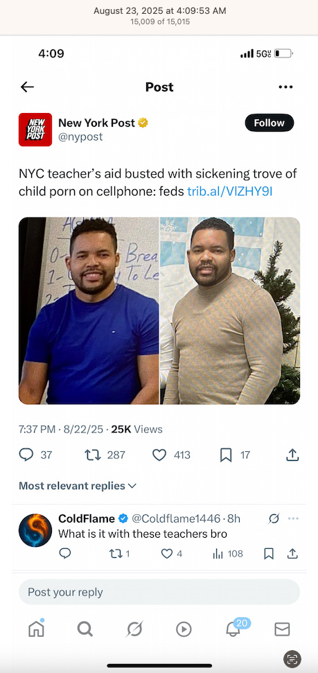 All the child sexual predators and sex offenders held positions that exposed them to children, what I believe are criminally-influenced hires passing for DEI. The majority of the indictments are within the last two years with the exception of three or four. There seems to be a sinister intention of employing child predators and sex offenders in educational facilities and programs going by the number of indictments. Employment platforms were probably how many were hired. All employment platforms are influenced. The YouTube screenshot (fourth image above), though not a child predator, is of former gang member who kept dismembered parts of his murdered victim in his refrigerator and who worked as a youth counselor at Queens Defenders, a public defender agency. More examples of indicted child predators under YouTube Videos below.