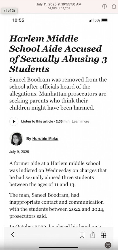 Doctors who are employed at respected NYC hospitals are indicted in sexually abusing their patients, 02-27 & 02-28-25 (towards bottom, “NYC Doctors Indicted for Sexual Assaults”.