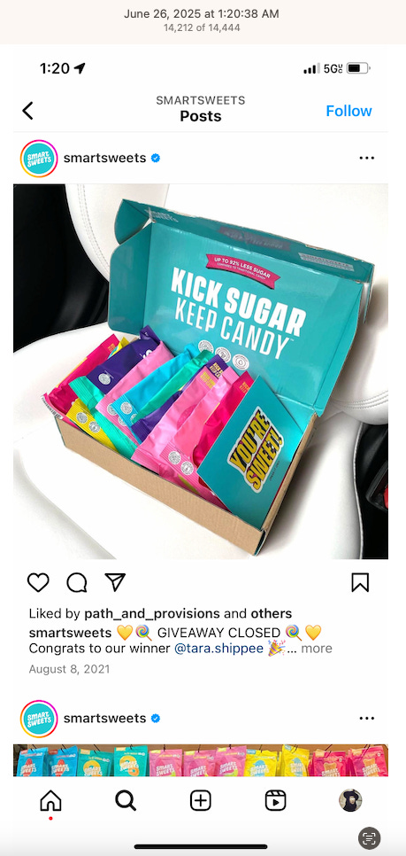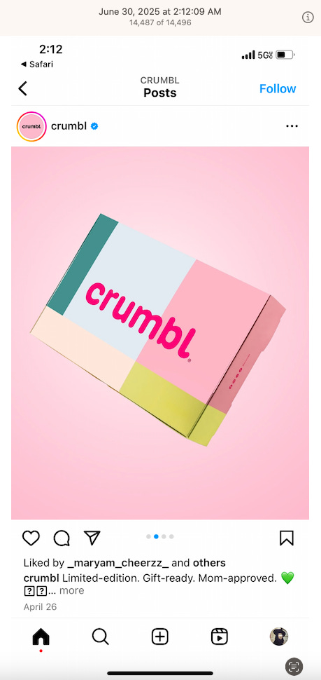 Screenshots above: Crumbl. Werther’s Originals. Burlap & Barrel. Alani Nutrition. Cookie Lab. Indaba Coffee. Banza. Bachans. Last Crumb.