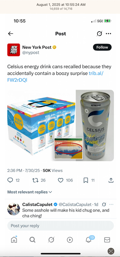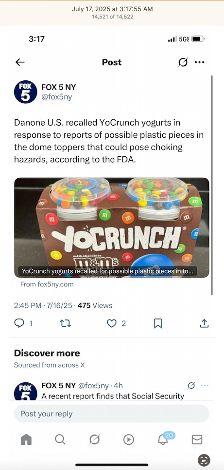 Screenshots above: More examples of recalls. Danone “YoCrunch” Yogurt (one dominant representation). Celsius Energy Drinks. Supergroop. Target cookies. Ding Dongs. “Ice Cream produced in New York.”