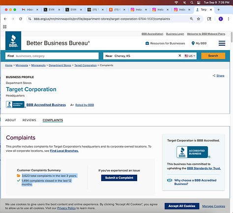 Screenshots above: Apple, Samsung, Google, Microsoft, Amazon, and Target's BBB. Most likely they’re restricted.