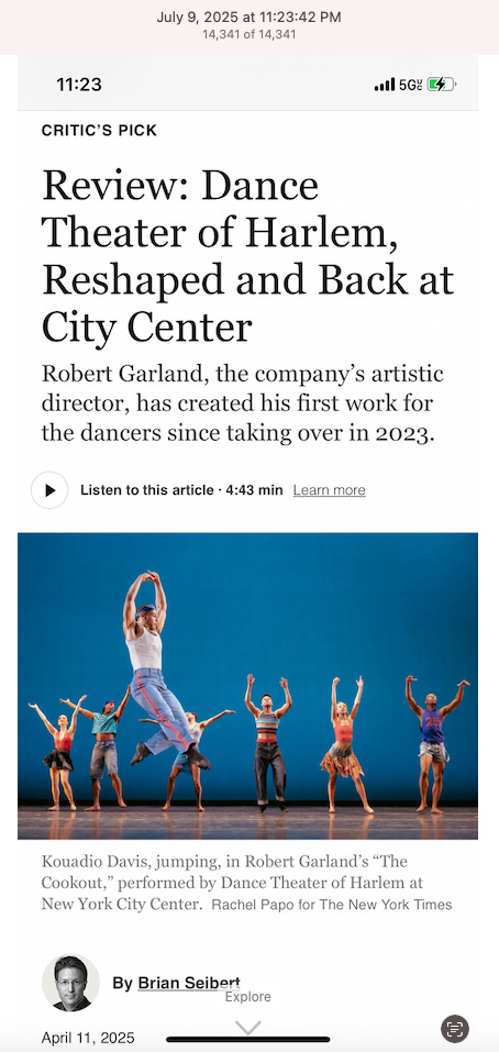 Screenshots above: All NYT. The types of dance are contemporary, street/hip hop, foreign traditional and experimental.