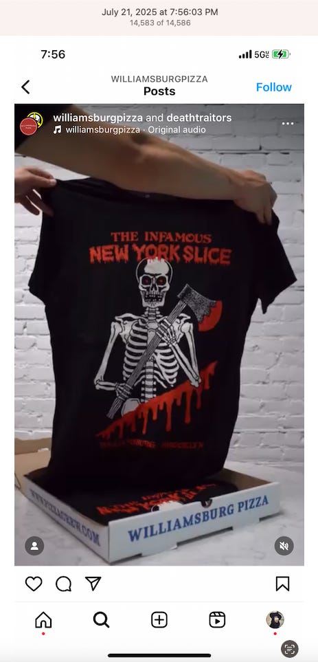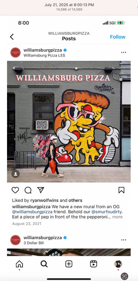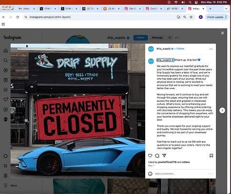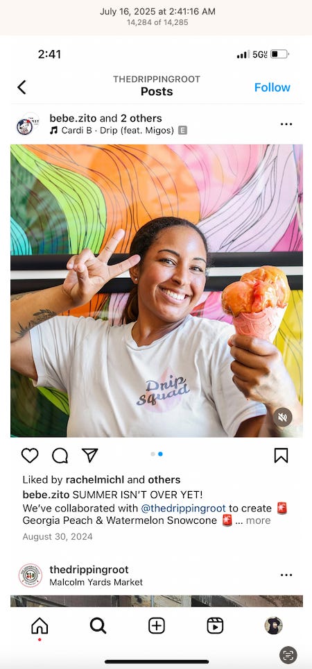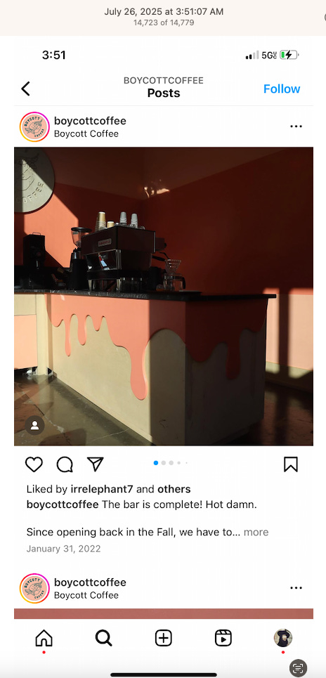 Screenshots above: Banza at Wholefoods. Democratic Socialists of America. Drip Supply store in Astoria that was open less than a year. Sinless Pop. Brique Bakery. Boycott Coffee. Kicksrtadomis.