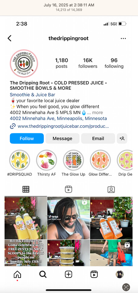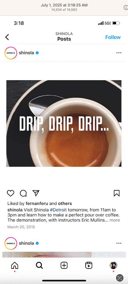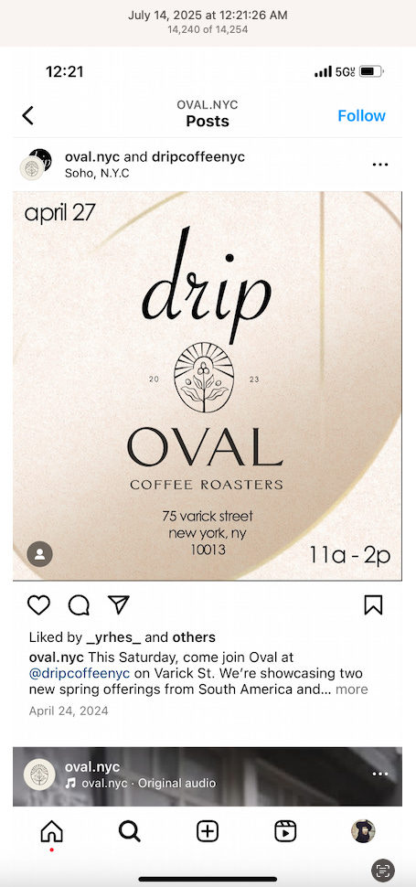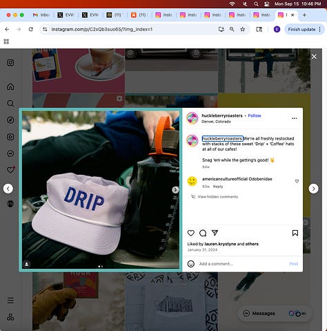 Screenshots above: The Dripping Root, “Drip Squad.” Drip Bib. Budon Olika. Onyx Coffee. La Colombe Coffee. Burial Beer. Wonder Bee. Coffee People Zine. The Nix Creative & Dough’P.