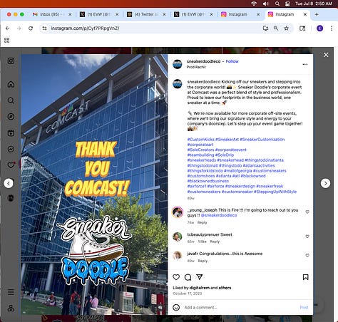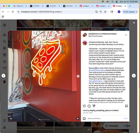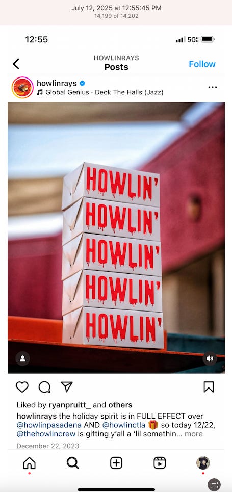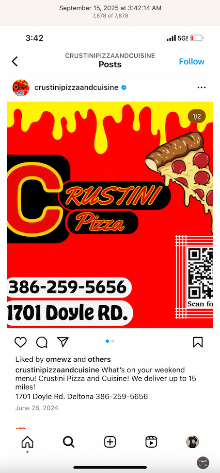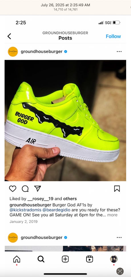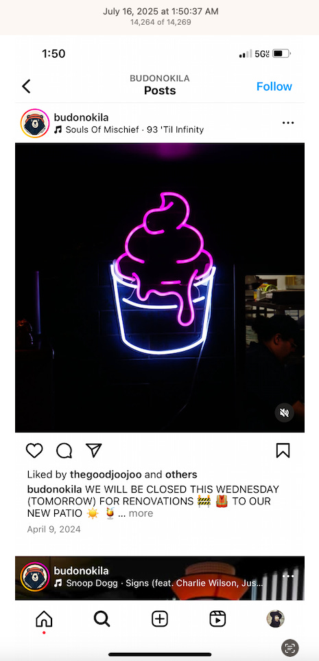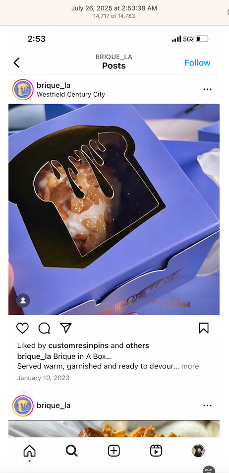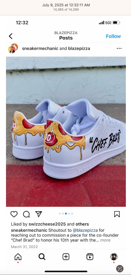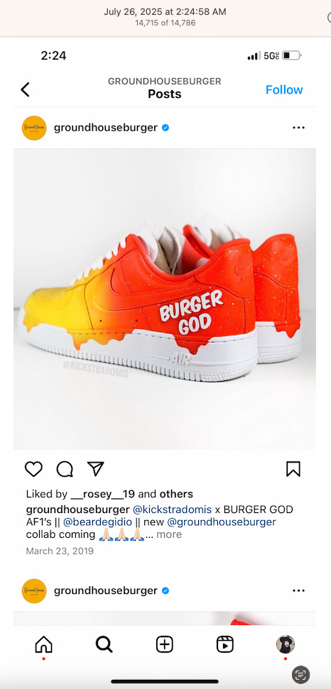 Screenshots above: Bachans. Blue Diamond. Sneaker Doodle. Pistakio. Blaze Pizza. Billionaire Boy’s Club Ice Cream (Pharrell Williams). The sneakers mages are of businesses where you paint and design the sneaker. Meaning that somewhere white Nike sneakers are being mass produced. Alternative Brewing, “We love Dripster.” Howlin Rays. Melt Pizza Company.