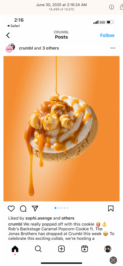 Screenshots above: Crumbl. Skinfix. Orlando Coffee Roasters. Shinola. Otterbeins Cookies. Franks Red Hot. Last Crumb.