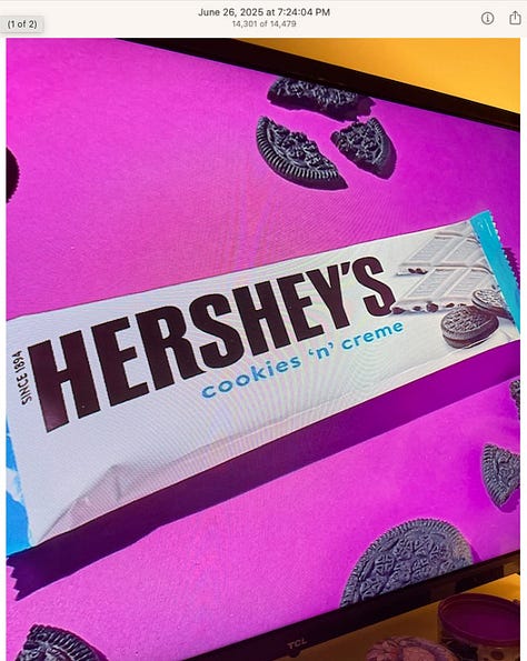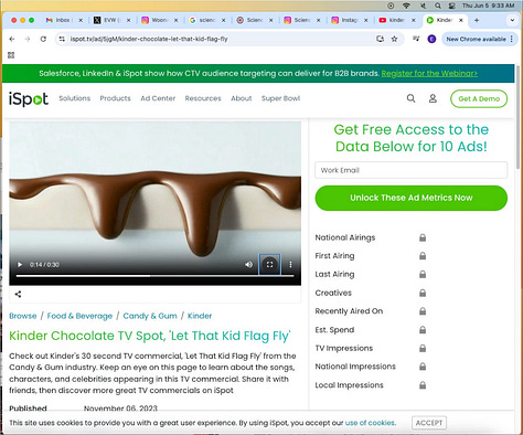 Screenshots above: Ad on Roku for Fancy Feast, Hershey’s, and Kinder Chocolate.