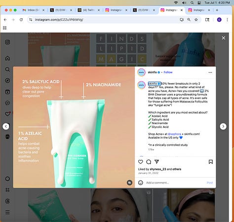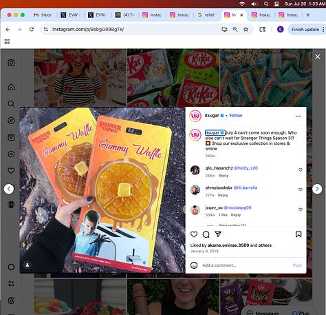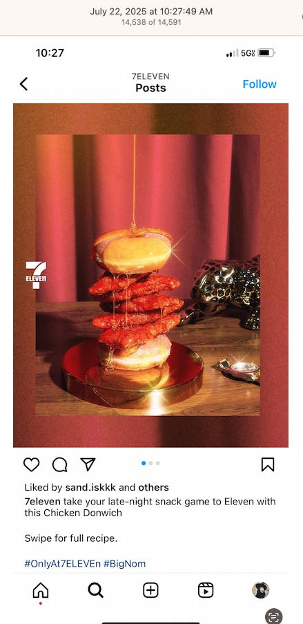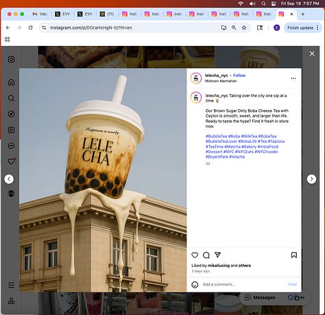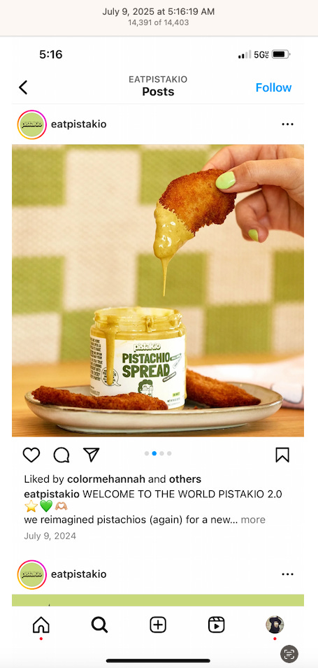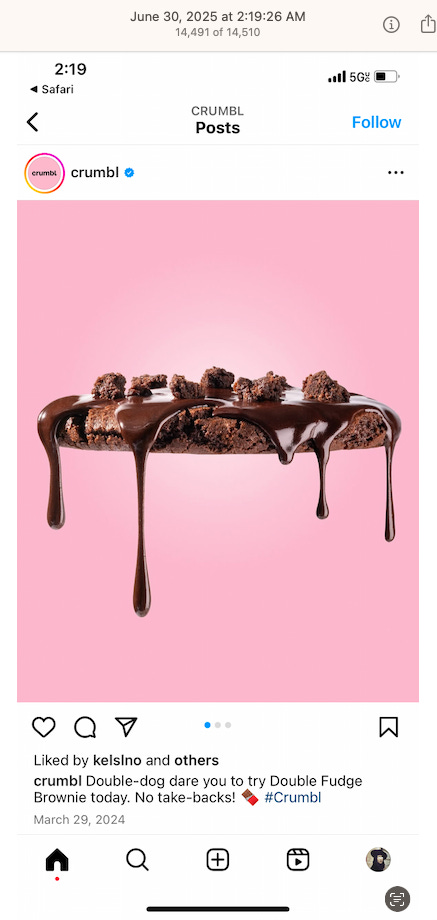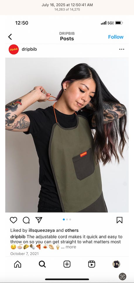 Screenshots above: Beis. Perfect Bar. Ritz. Fulfil, “Drip too hard.” Vital Proteins. Big Face, “Limited Drip.” Graza. Eggo, “Choose your drip.” Coolhaus.