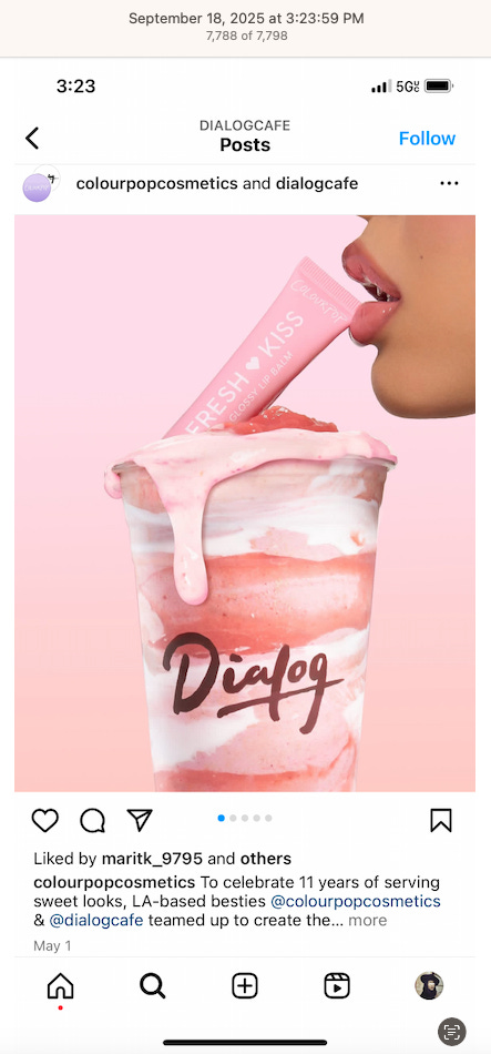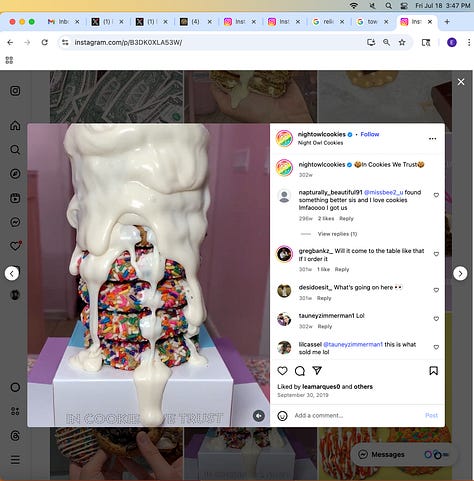 Screenshots above: Oatly, “Drip Dry High.” Super Coffee, “Drip Whip.” Real Good Foods. Pantone, “Drip”. XO Marshmallow. Ice Cream for Bears. KuCoin, “Drip”. Cold Stone. Reeses Puffs.