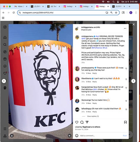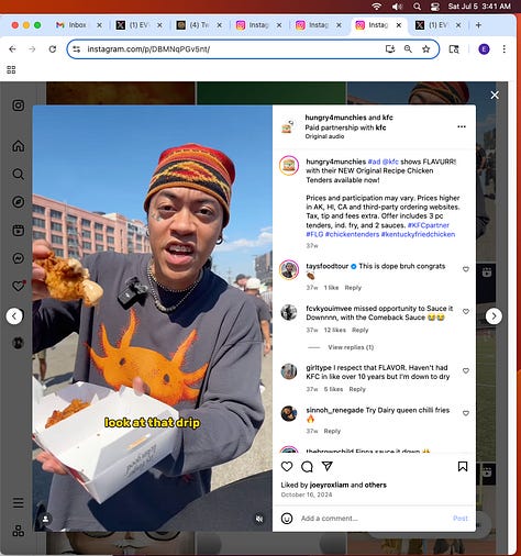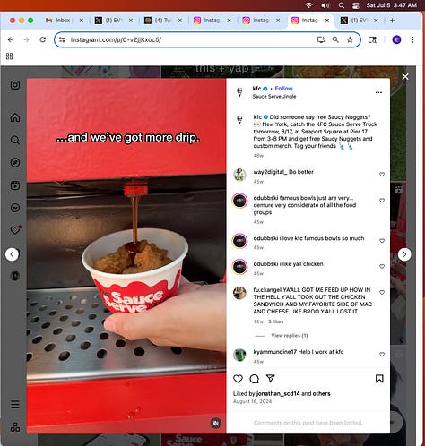 Screenshots above: KFC, “And we’ve got more drip”, “look at that drip.”
