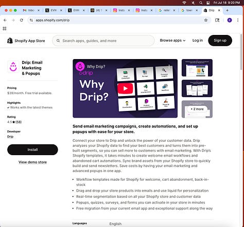 Screenshots above: Crowns & Hops Beer. Chunky Fit Cookies. Drip Coffee NYC & Oval Coffee Roasters. New York Blood Center. Summer Fridays. Drip Collective Chicago. Night Owl Cookies. Burger King. Shopify & Drip app.
