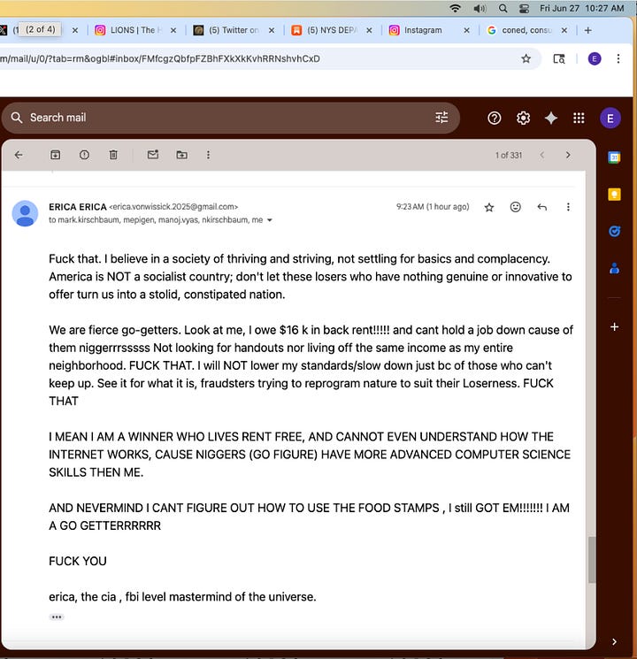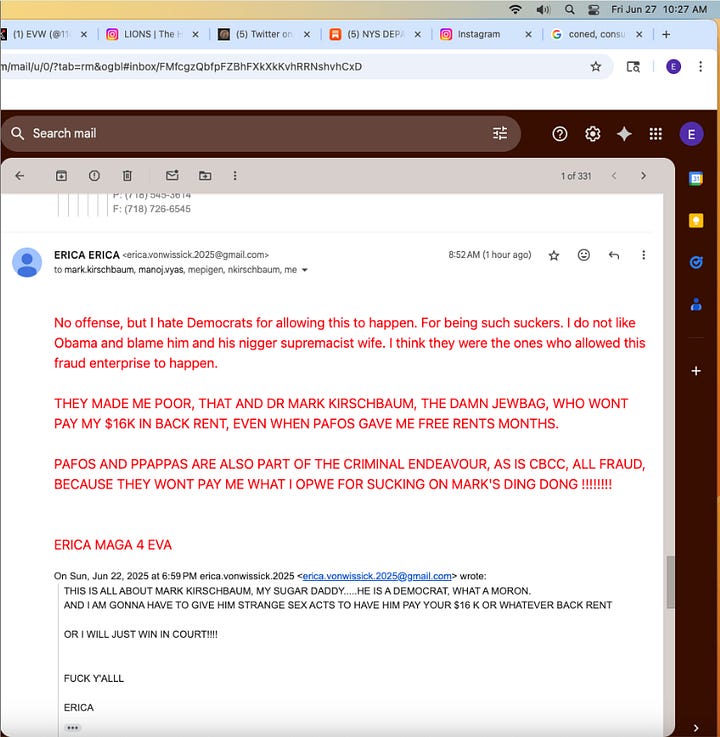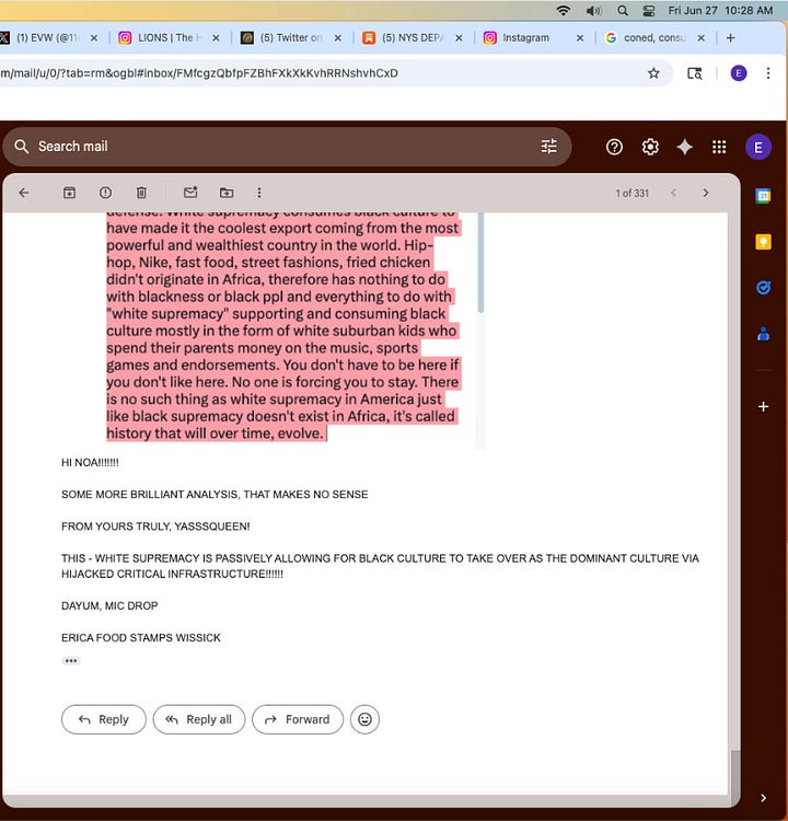 The emails were also sent to friend, his job, his daughter, the landlord and landlord's lawyer. Yesterday's post, NYS Taxation and Finance, really pissed off the criminals. Why? Because I'm right, and this is all retaliation. Reminder: these are strangers obsessed with me. Why? Because I'm whistleblowing their crimes. Do you think they would spend all this time obsessing over me if they didn't have to? Since 2022. No, they'd get a life. I don't know who these people are and I don't care. I don't care to even know their names. But they're obsessed with me and all I'm calling out on X/Substack.