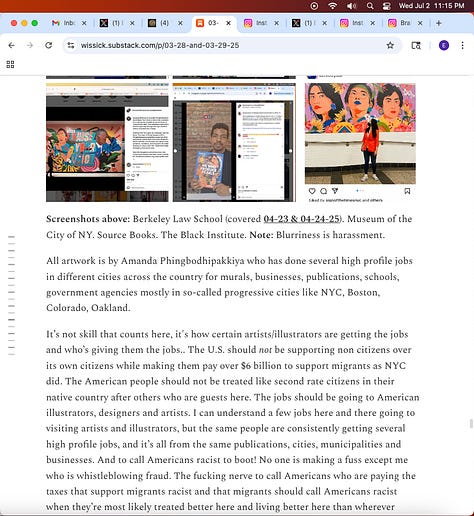 Screenshots above: Original post on X that was used by the criminals in their defamatory emails sent to multiple people on 06-27-25; though I fail to see anything criminal in what I wrote. Certainly doesn’t cancel their criminal actions of emailing people in their effort to pull a racial hoax of calling me racist by taking content out of context—content that’s on my public social media for anyone to see— hoping for a reaction that’s equivalent to my being hung by a tree. Every time they defame my character and terrorize me and those I know with their disruptive emails, it’s a racial hoax in trying to paint me racist.