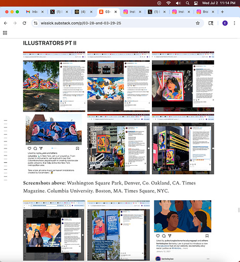 Screenshots above: From 03-28 & 03-29-25 post - Link (bottom, “ILLUSTRATORS PT II”).