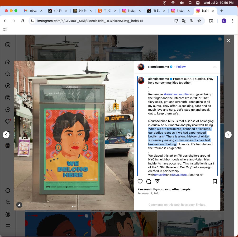 “When we are ostracized, shunned or isolated our bodies react as if we had experienced bodily harm. There is a long history of white supremacy making communities of color feel like we don’t belong.”