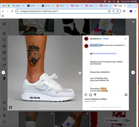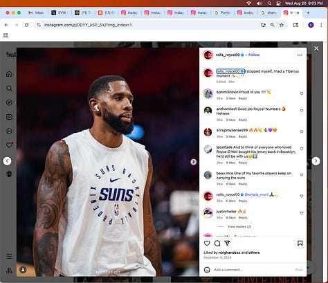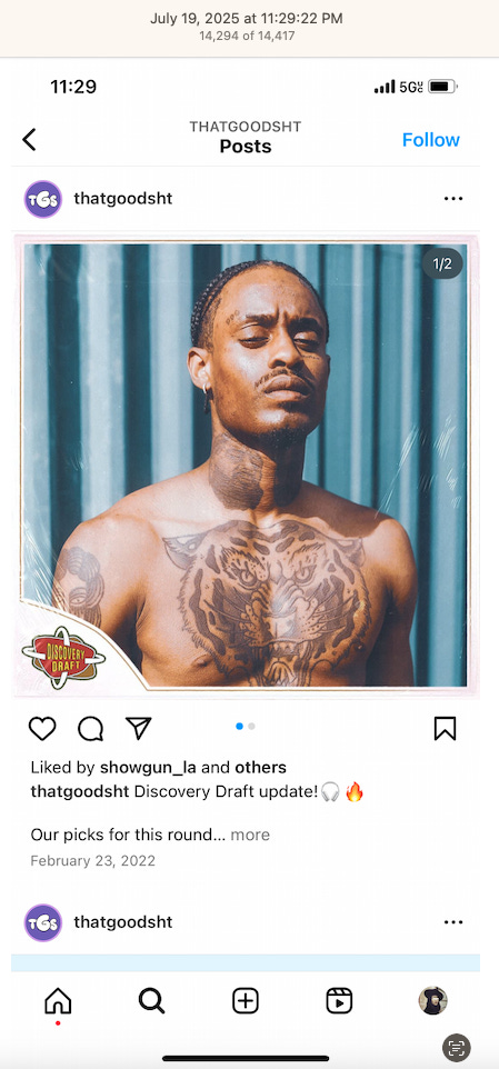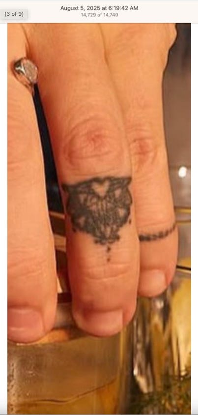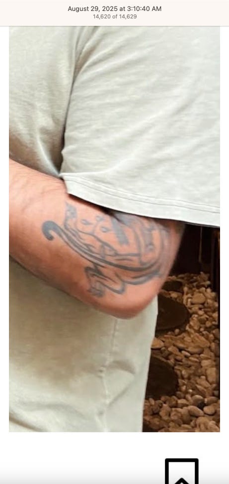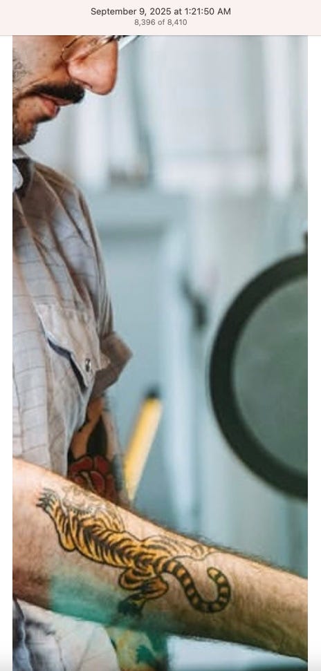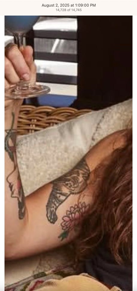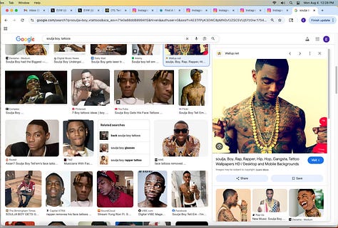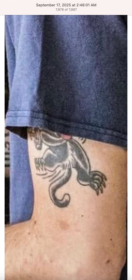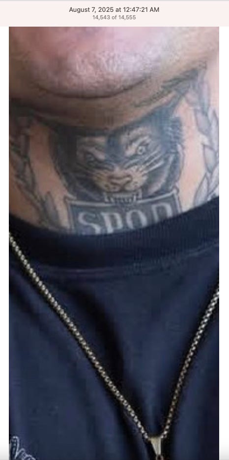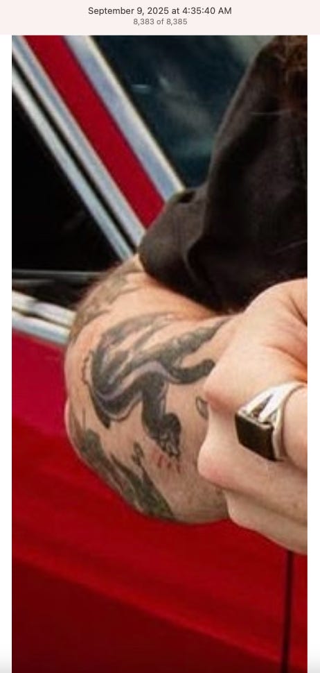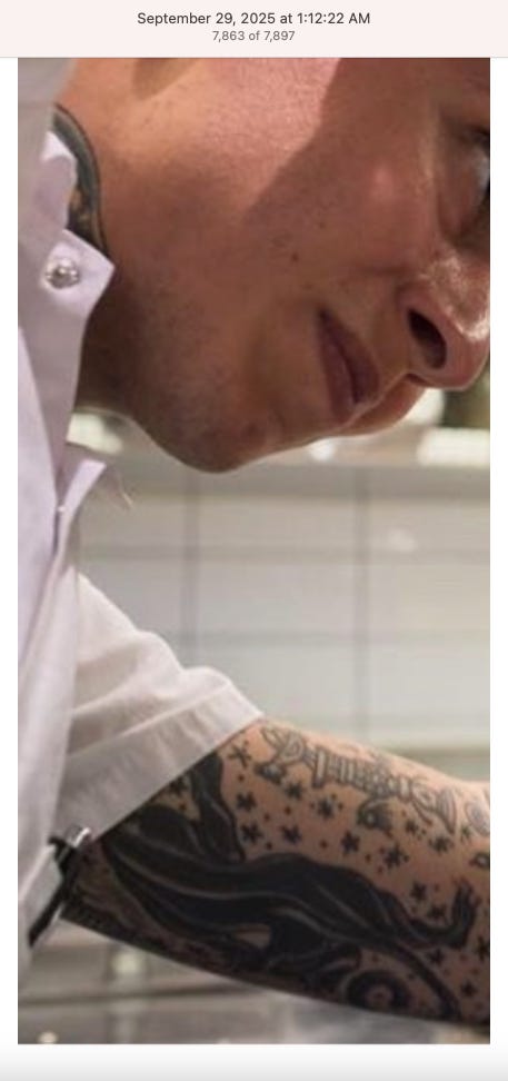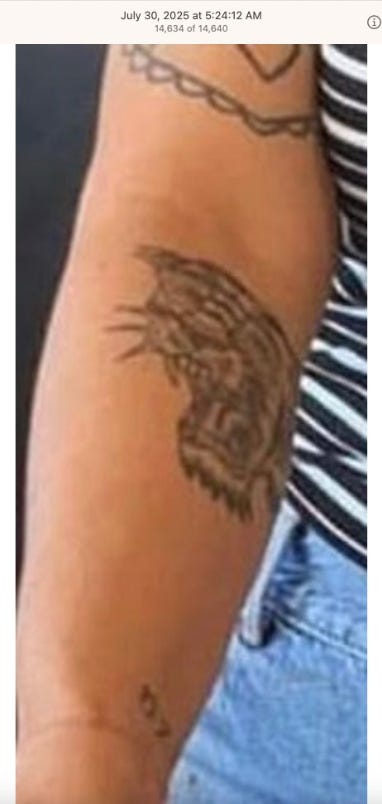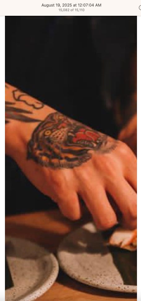 Screenshots above: Lion and tiger tattoos on the hand: GLD. The sneaker entrepreneur who was murdered outside his SoHo store in June 2024. Anker. Last Crumb cookies. Hedley and Bennett (rose). Uncle Paulie. Bawi. Buddies. News & Coffee.