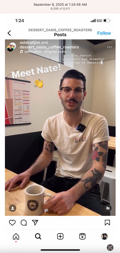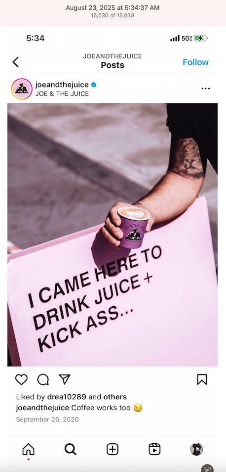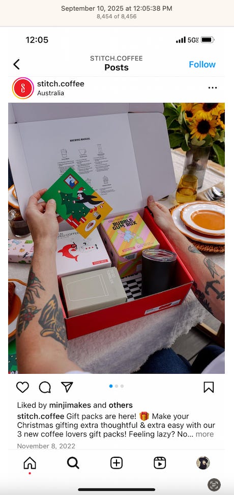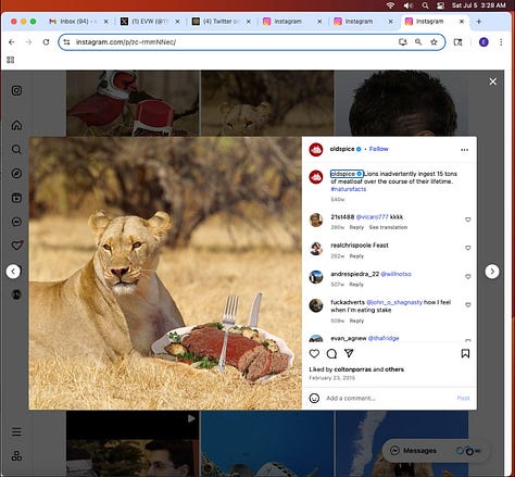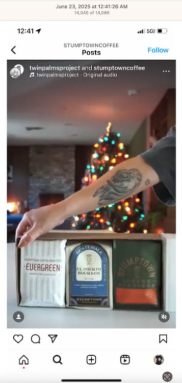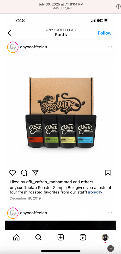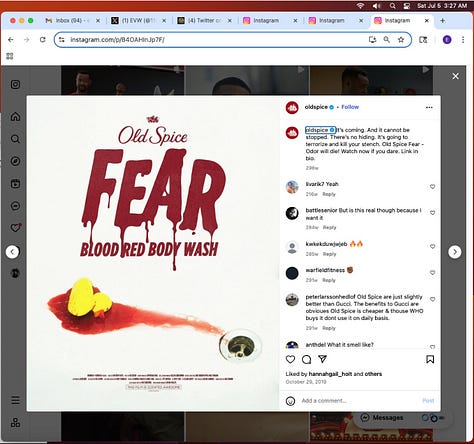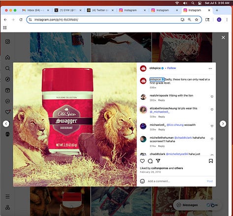 Screenshots above: Old Spice’s Instagram. Panther Coffee. Gregory’s Coffee.