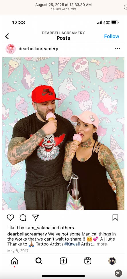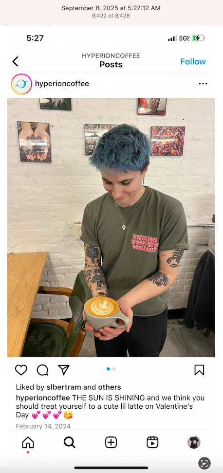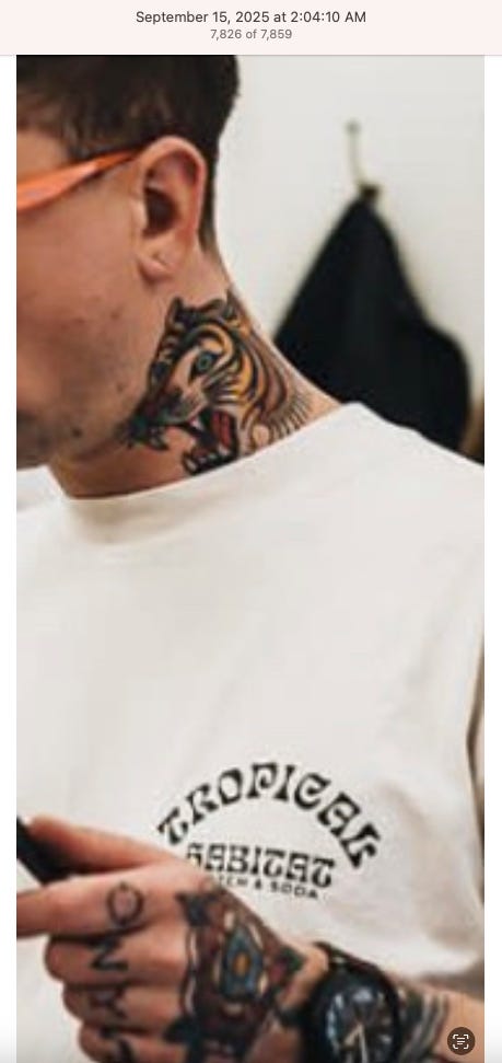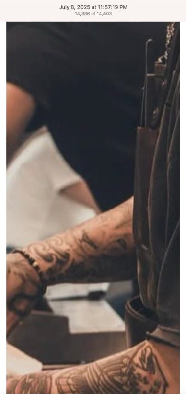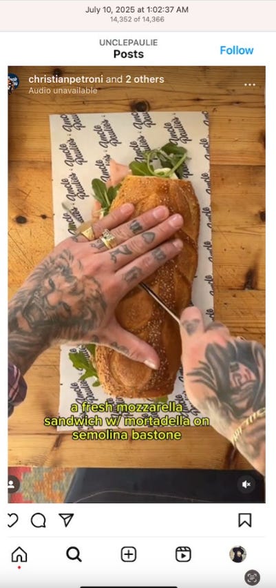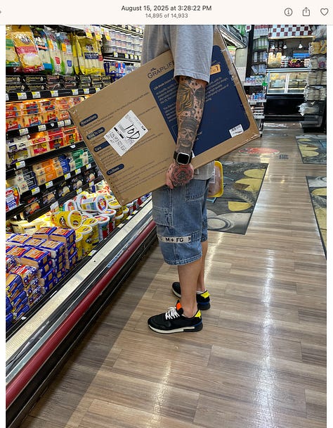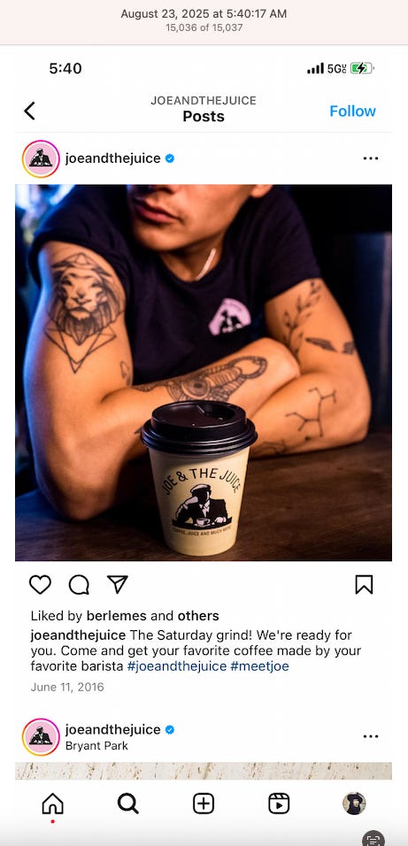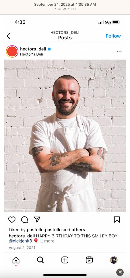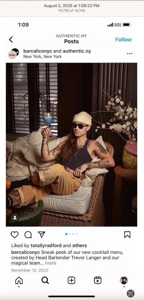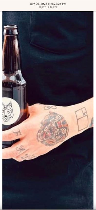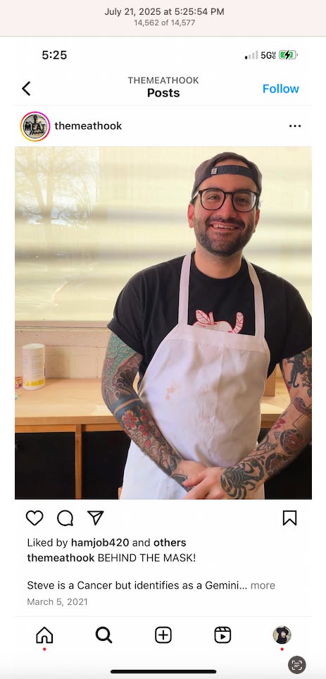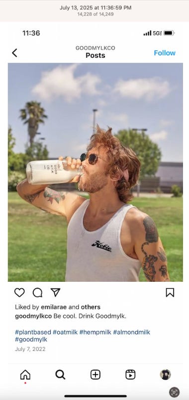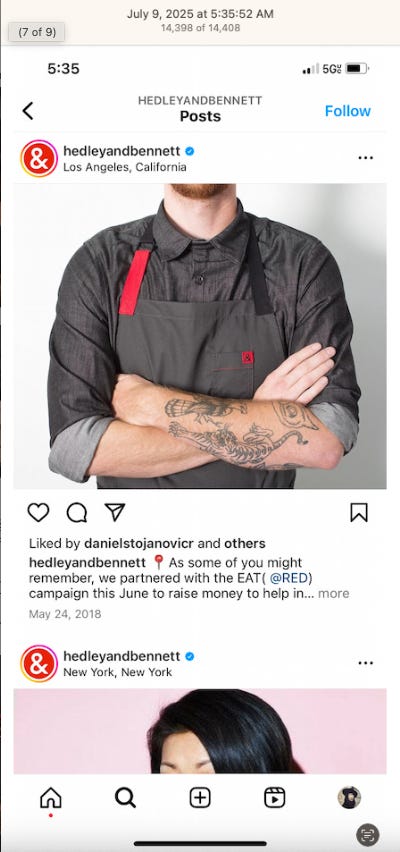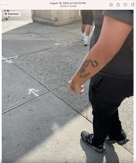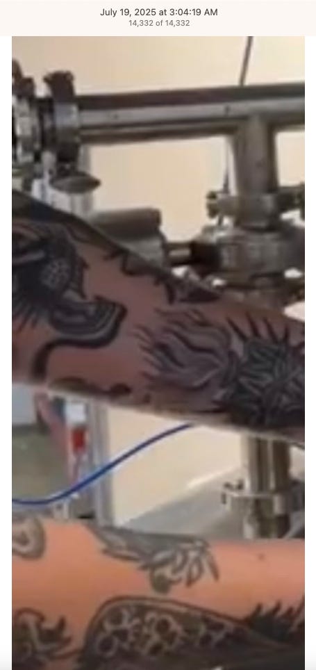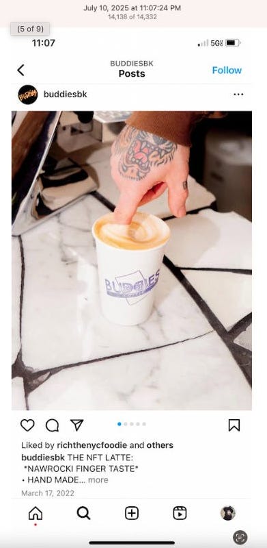 Screenshots above: Good Mylk Co. One of the two crypto guys indicted on kidnapping and torturing an Italian associate for his password to $30M worth of bitcoin in May 2025. Morning train ride on 07-22-25. Bachans: If you look closely, you can make out a front leg of a tiger. Ceremonia Bakeshop. Immoral. Hedley & Bennet. Astoria NY.
