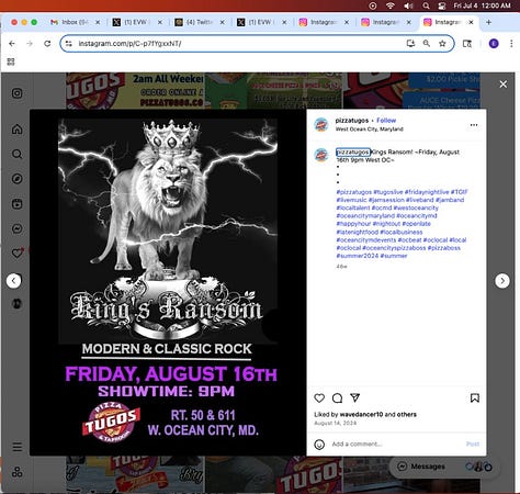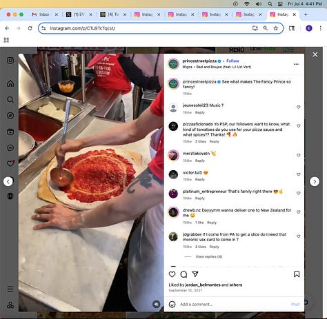 Screenshots above: Pizza Togo’s Instagram showing “king’s ransom.”