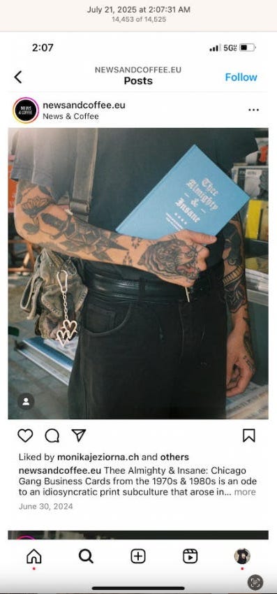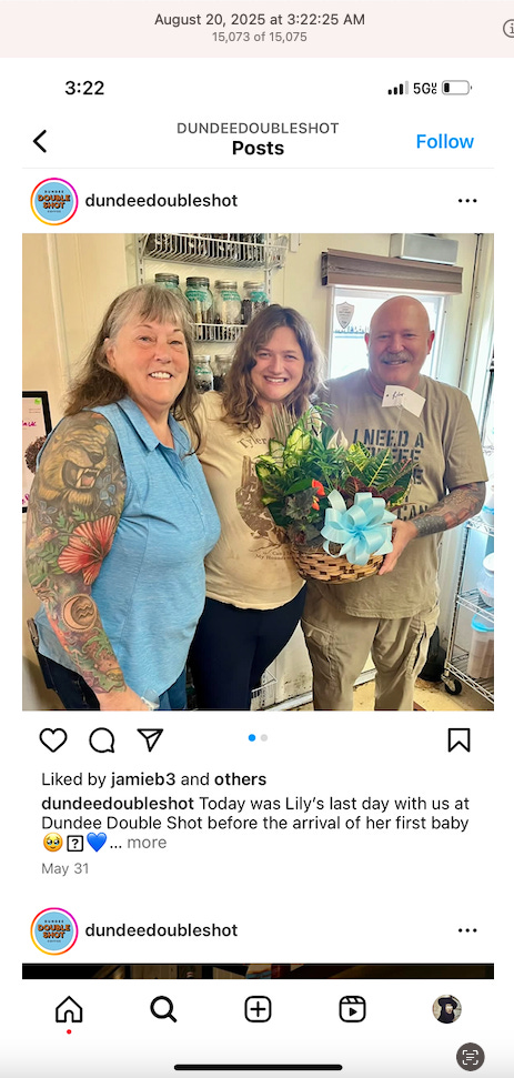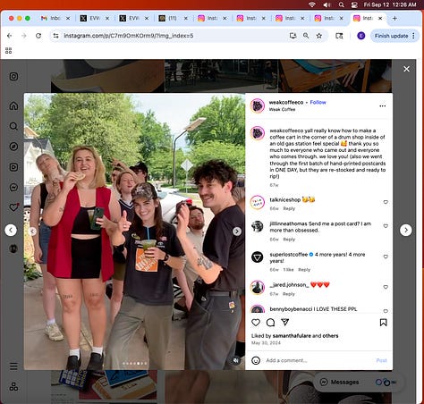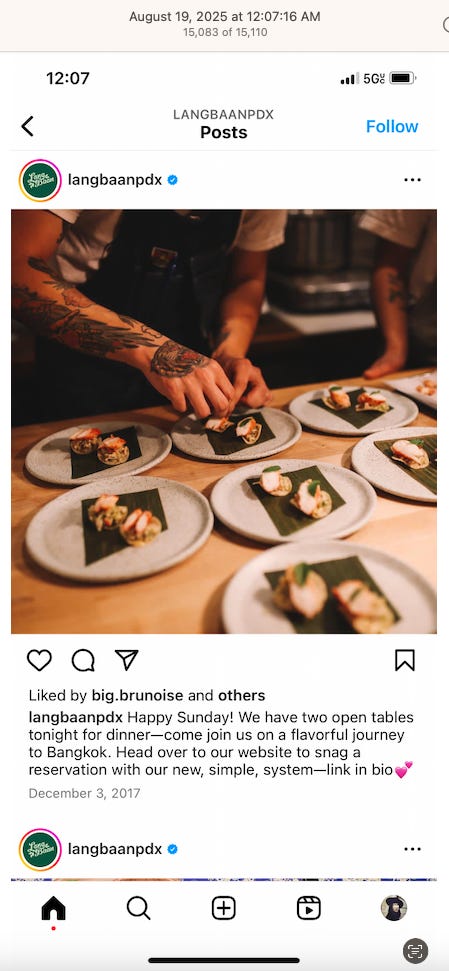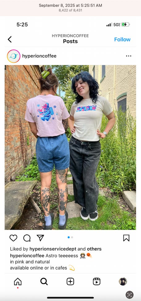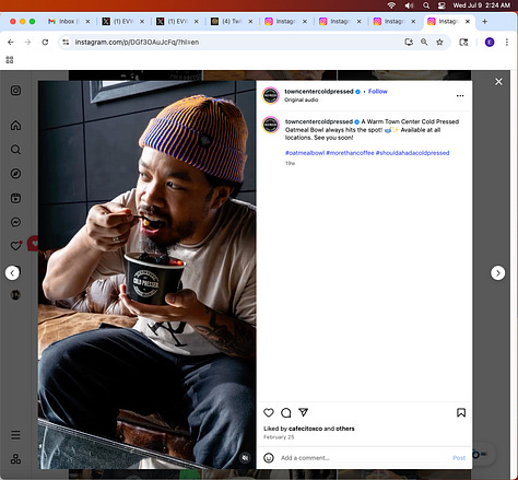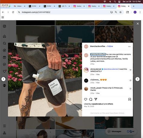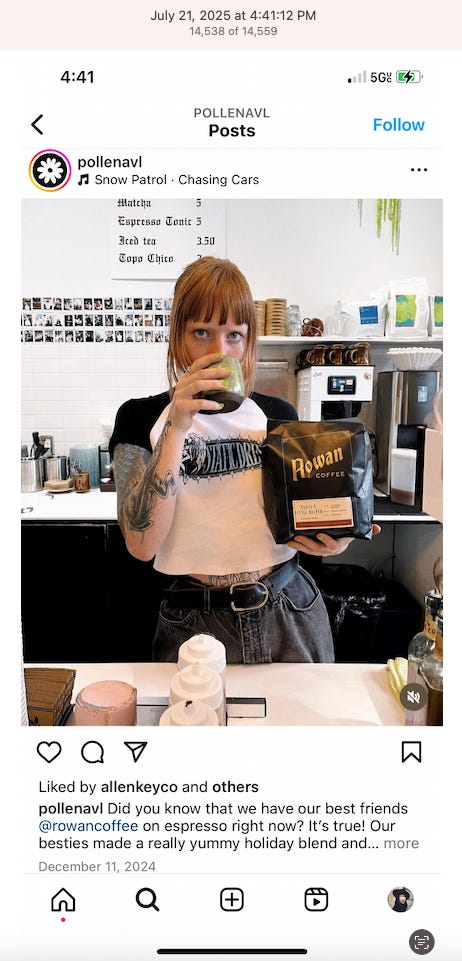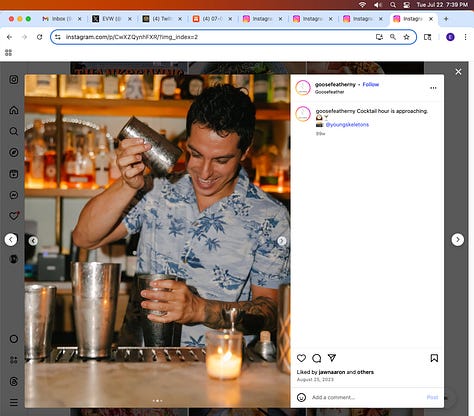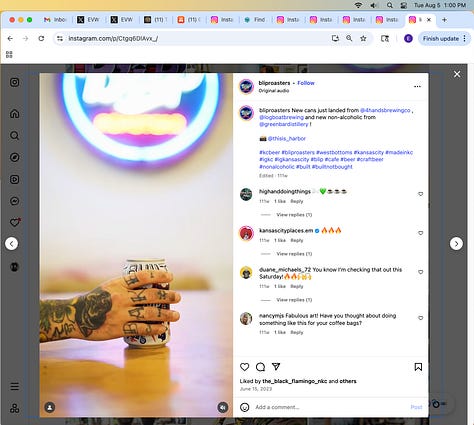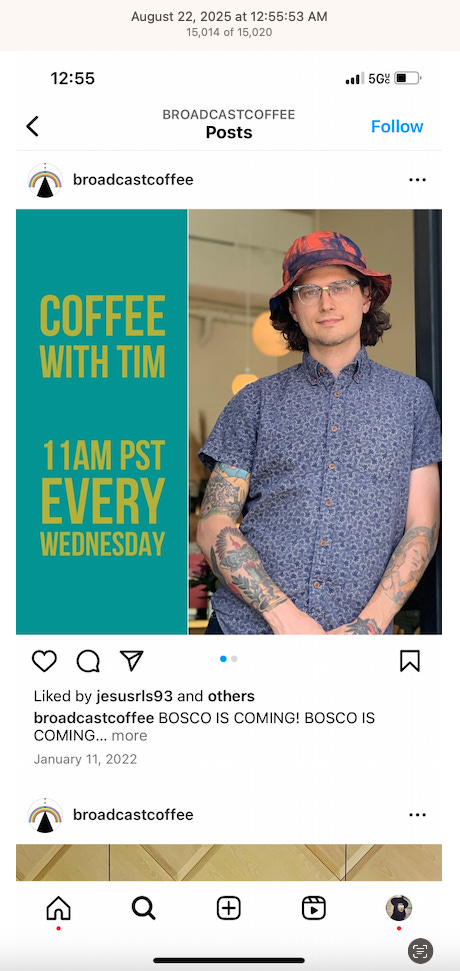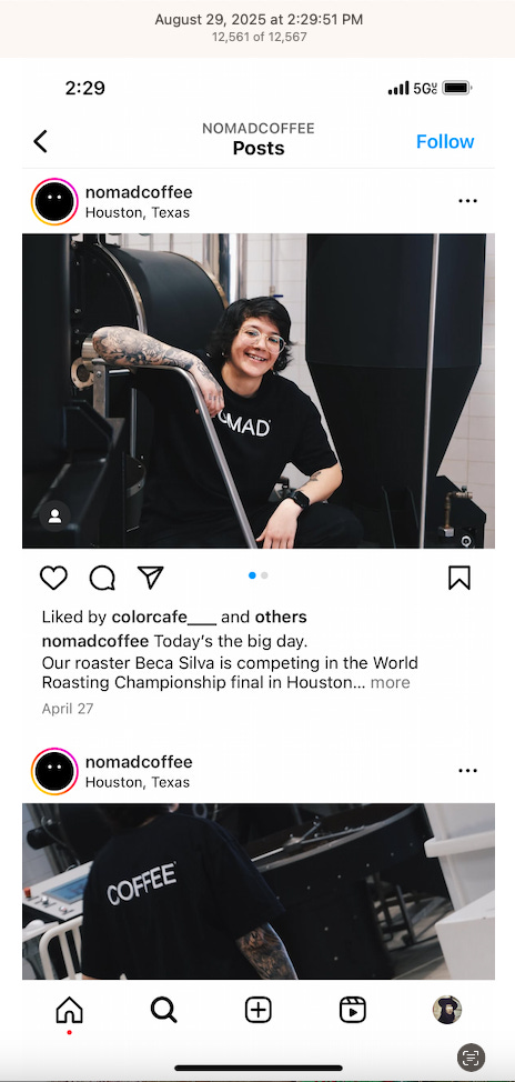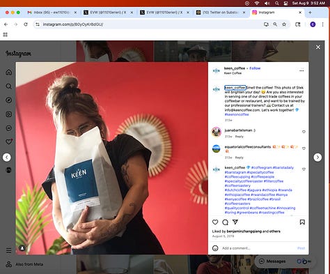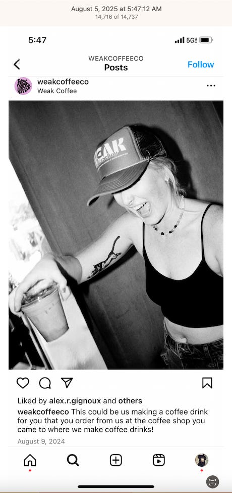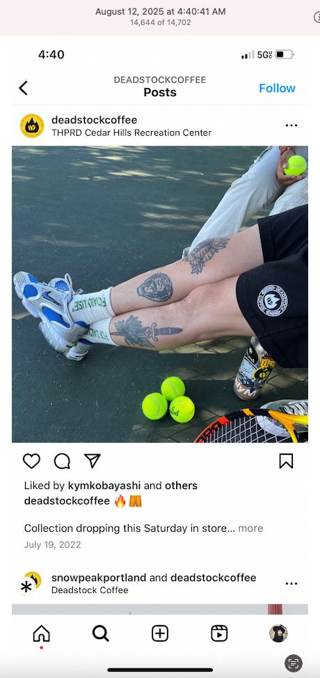 Screenshots above: Minnow's Instagram had another image of the person that gave his handle. That's how I landed on his Instagram for a better view of the tattoo that looks to be of the same model panther. Thump Coffee. Parsons Chicken. Common Place Coffee. Odd Luck Coffee.