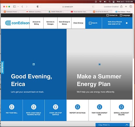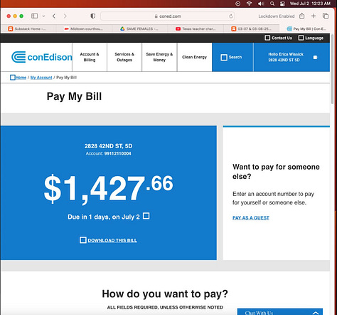 Screenshots above: Paid what I could towards ConEd. I haven’t used the AC since 2022. This summer has already been exceptionally hot and I've jumped in-and-out the shower multiple times on multiples days and throughout the day to try to cool off.