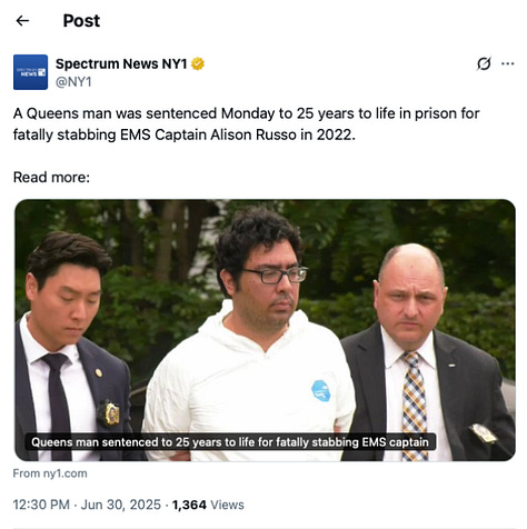 Screenshot above: Went to the neighborhood precinct to pick up the latest police reports. Three aggravated harassments and four harassments, totaling seven. I'm told I can go to 1 Police Plaza in the city to pick up the actual copies. I’ll try to go before the court date.