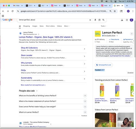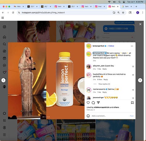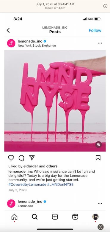 Screenshots above: Lemon Perfect beverage founded in 2017. Lemonade Inc insurance founded in 2015 (fourth image shows drip). Beyonce's Lemonade released in 2016. All one influence.
