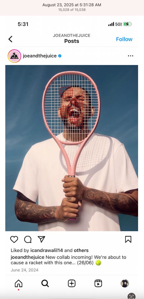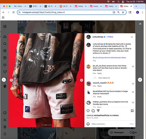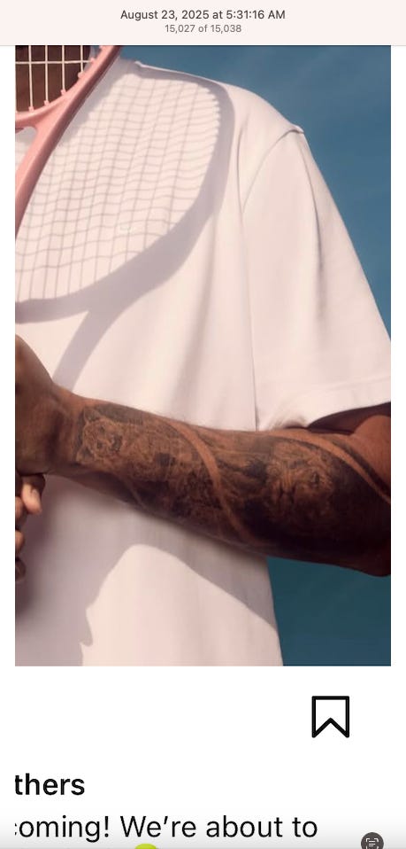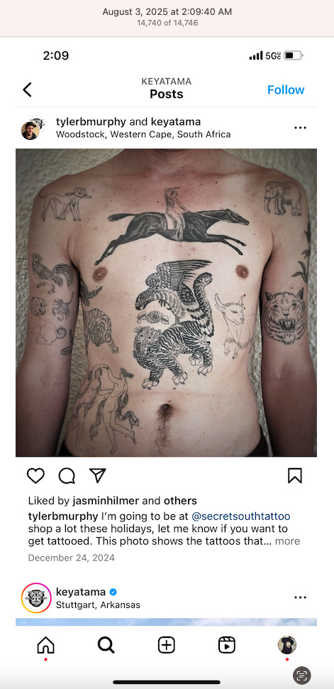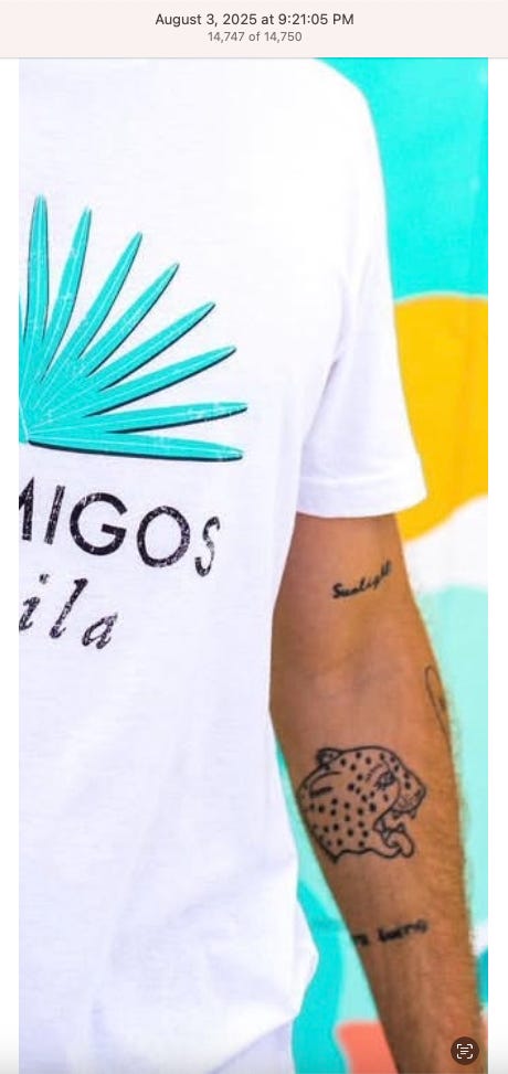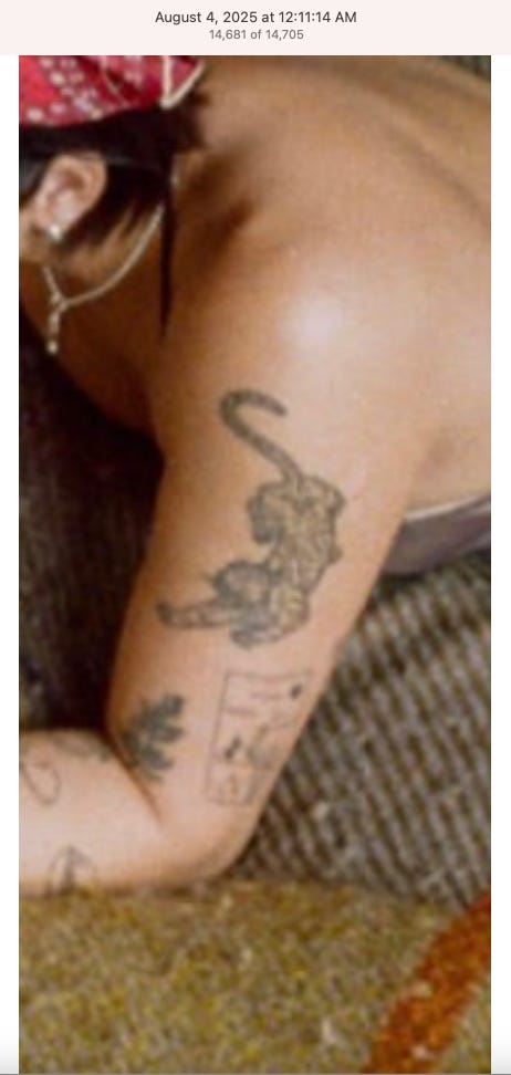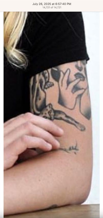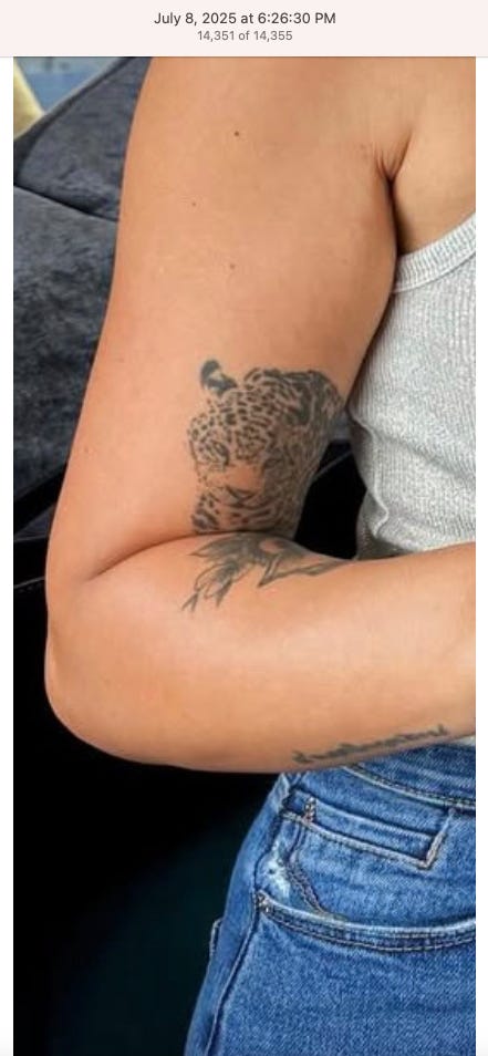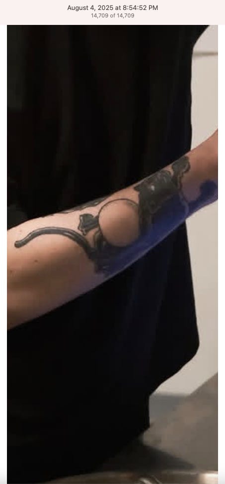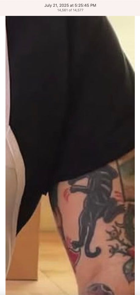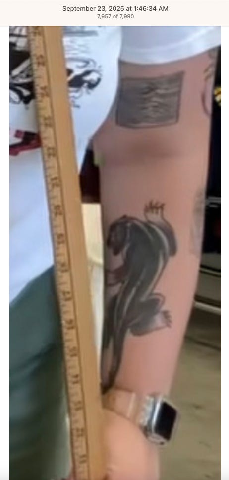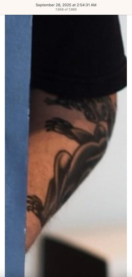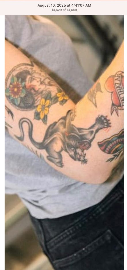 Screenshots above: The three above screenshots show partial panther tattoos on the arms. Prince Street Pizza - Link to post. Converse - Link to post. Town Center Cold Pressed - Link to post.