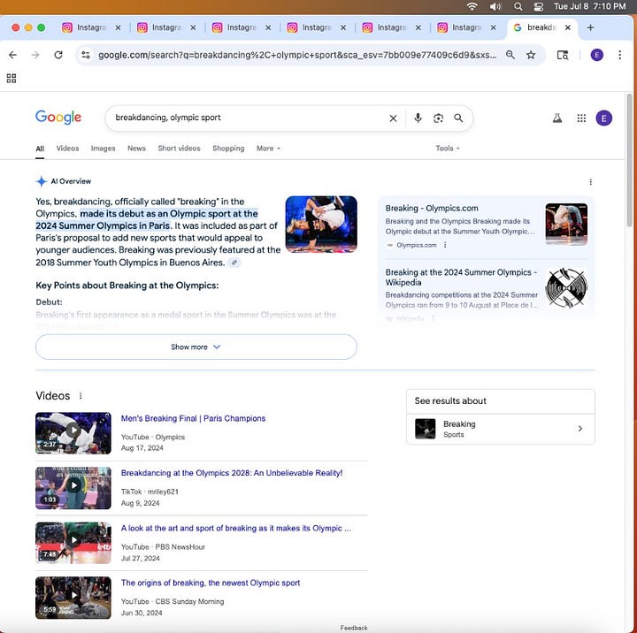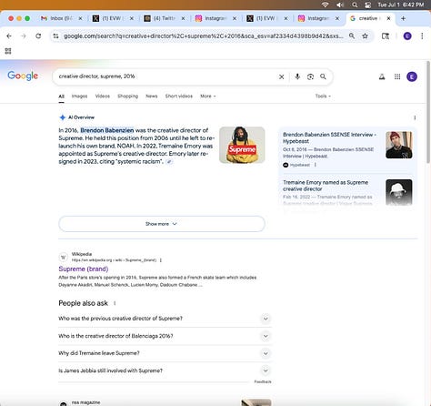 Screenshots above: Similar to how Supreme won CFDA for best men's wear designer in 2018, breakdancing became an official Olympic sport in Paris 2024 and skateboarding in 2020.