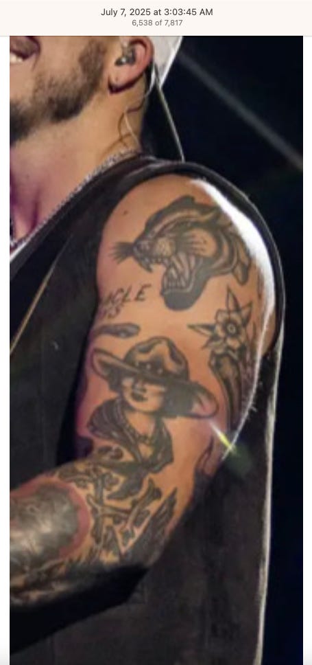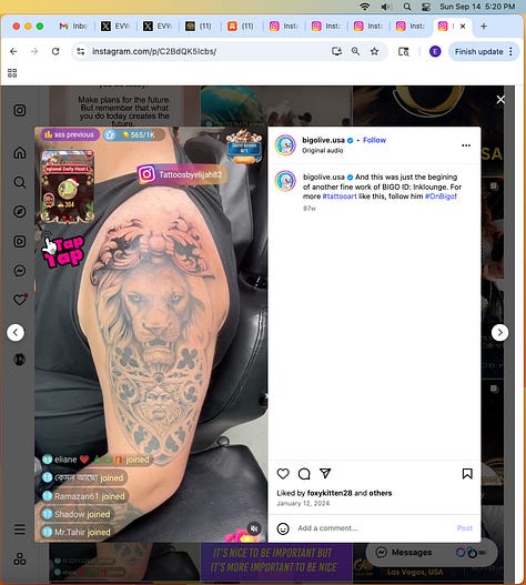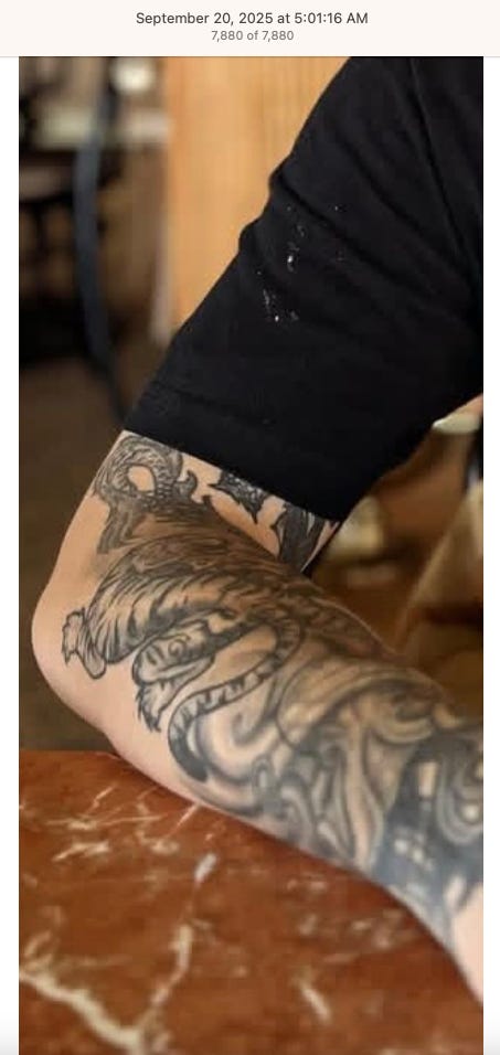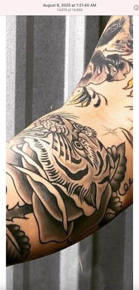 NOTE: SOME OF THE TATTOOS HAVE ROSES AND DAGGERS WHICH ALSO SEEM TO BE SYMBOLIC BASED ON HOW OFTEN I’VE SEEN THEM ON SOCIAL MEDIA. EXAMPLES OF ROSE TATTOOS - LINK TO POST (BOTTOM). IMAGES ARE OF BOTH DOMESTIC AND INT’L BUSINESSES, LOCAL NEWS, ENTREPRENEURS, AND ONES I TOOK IN NYC.
