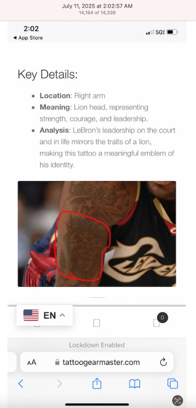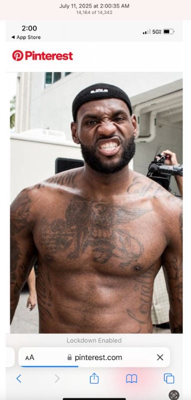 Screenshots above: Athletes with lion/big cat tattoos. At least one of them is a billionaire. I don’t know about the others, but I’m sure they’re multi-millionaires.