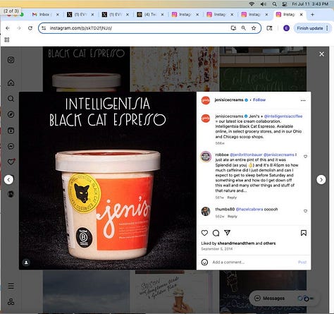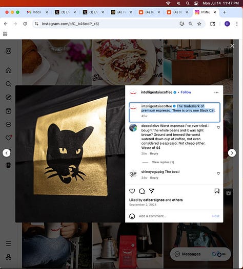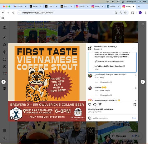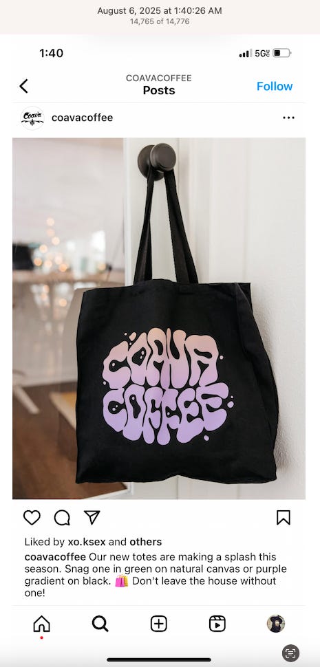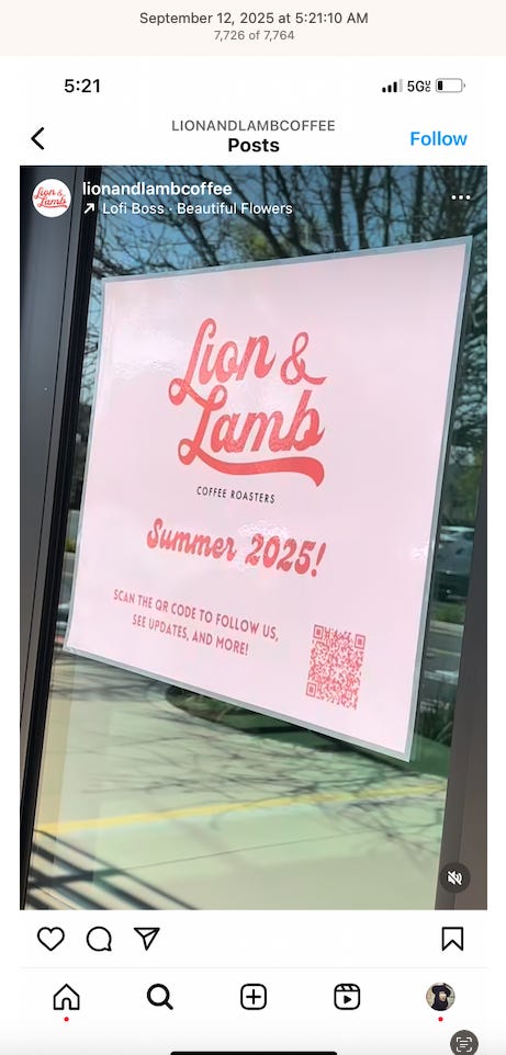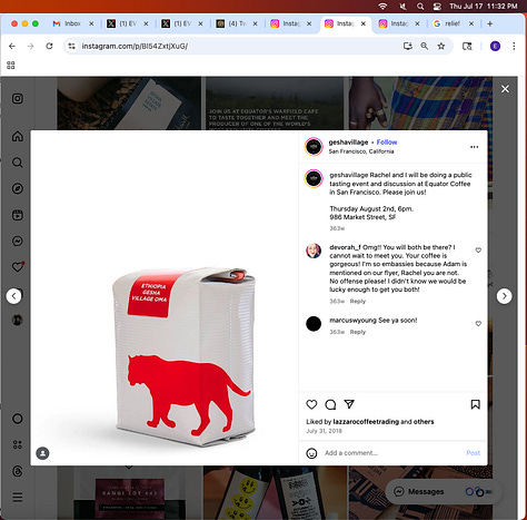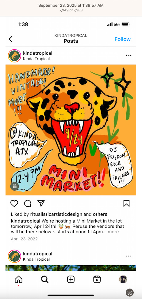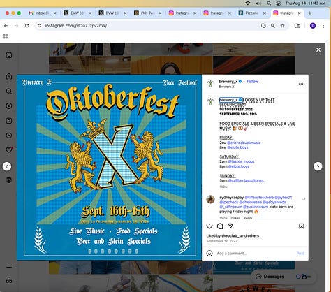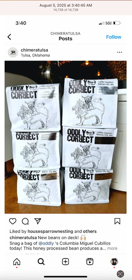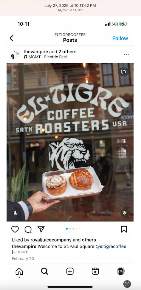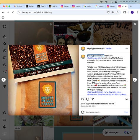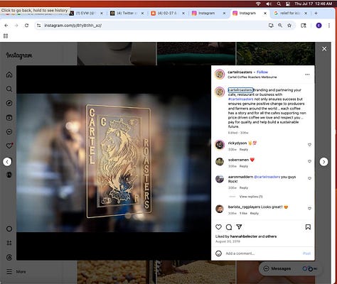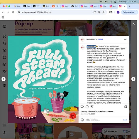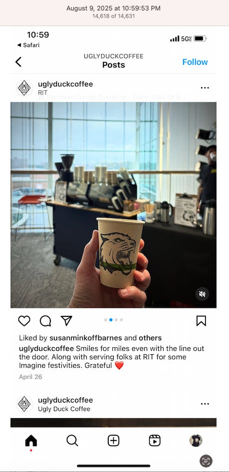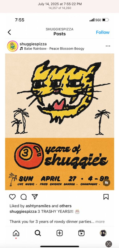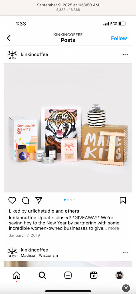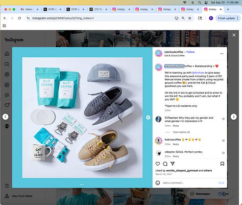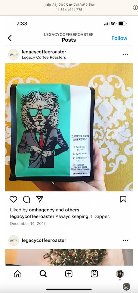 Screenshots above: 626 Hospitality. Shuggies Pizza. Equator Coffee and ACLU partnership for “immigrant rights.” Nine Lives thrift store. Mighty Peace Coffee. Gallant Tiger. Cartel Roasters.