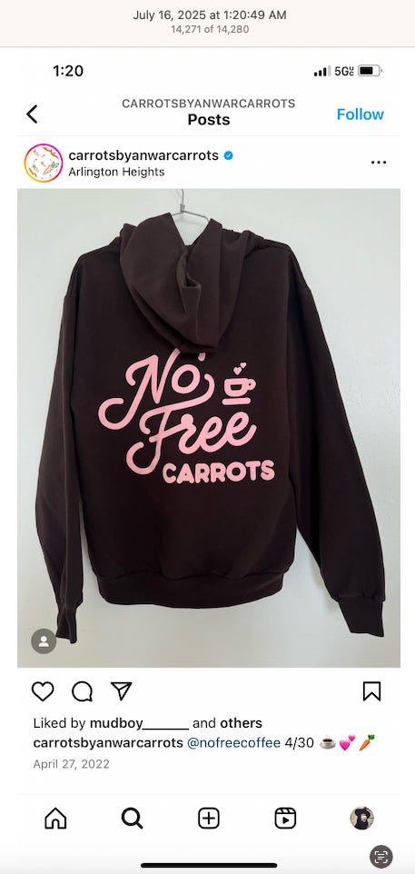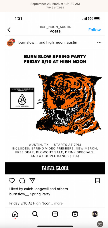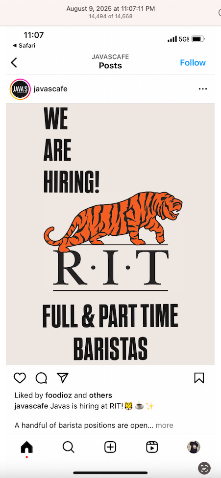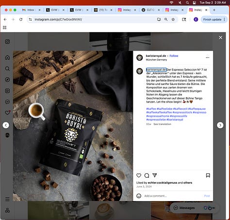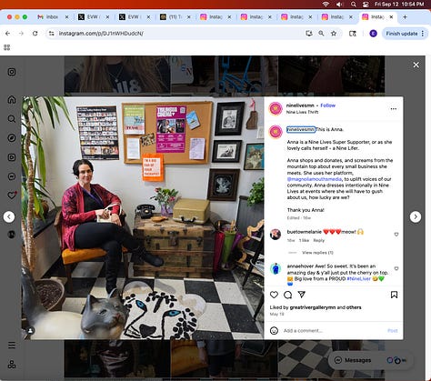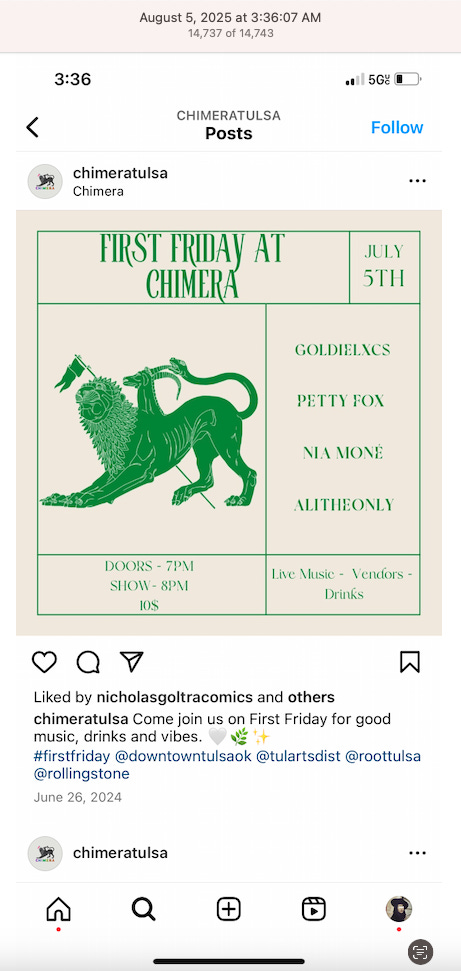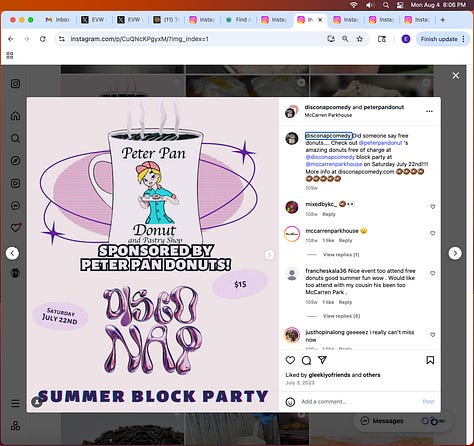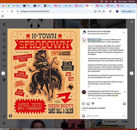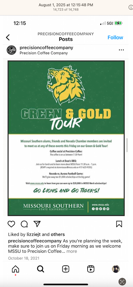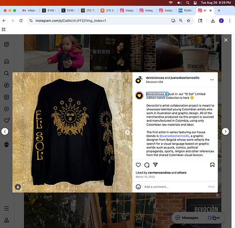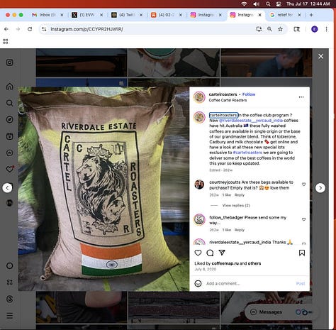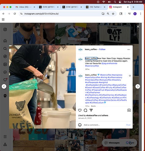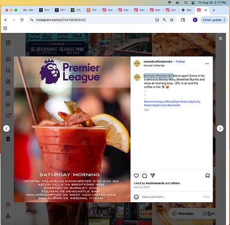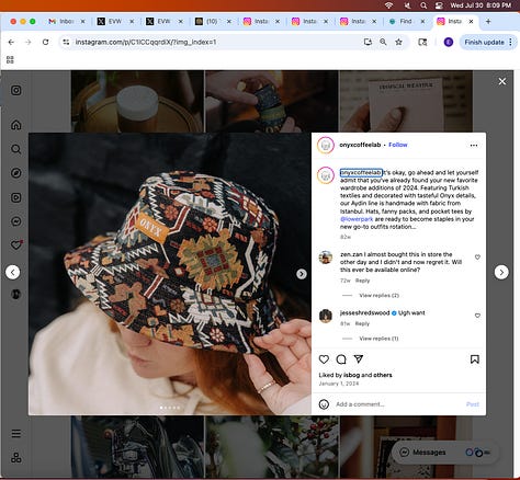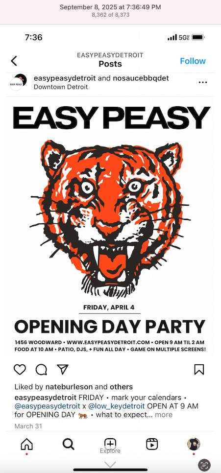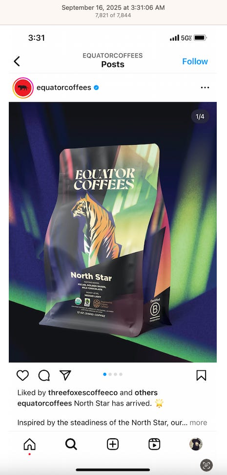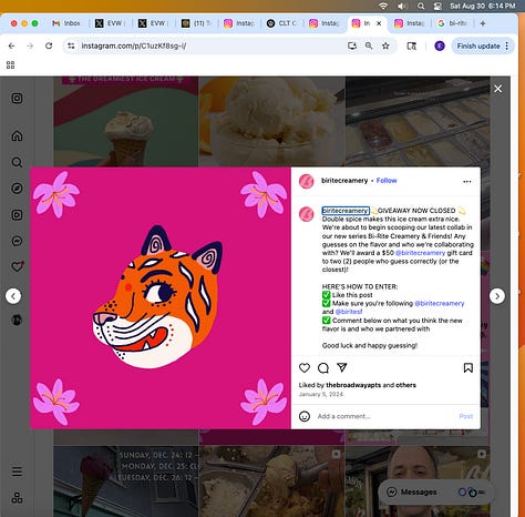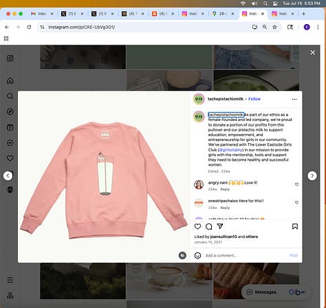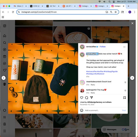 Screenshots above: 626 Hospitality. Shuggies Pizza. Equator Coffee and ACLU partnership for “immigrant rights.” Nine Lives thrift store. Mighty Peace Coffee. Gallant Tiger. Cartel Roasters.