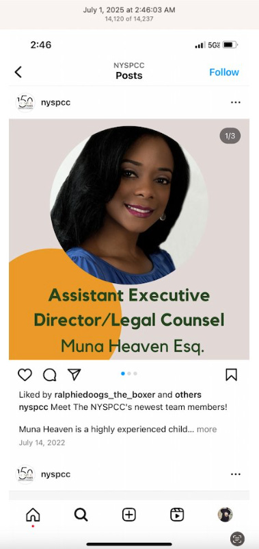 Screenshots above: WSJ continued: Executive Director, Women's Community Justice Assn. Child Sexual Abuse Specialist, Prevention of Cruelty to Children. Director/Legal Councel, Prevention of Cruelty to Children. CEO, NY Liberty. Executive Director, Prevention of Cruelty to Children. President & CEO, Prevention of Cruelty to Children. Director, Reckitt. Director, Palmdale Recycled Water Authority Board CA.