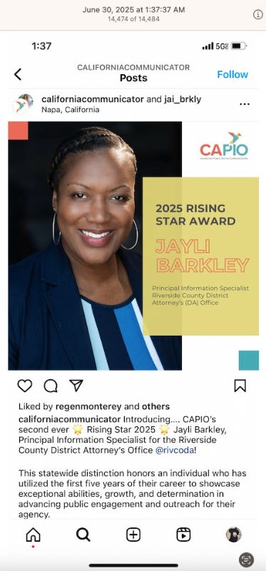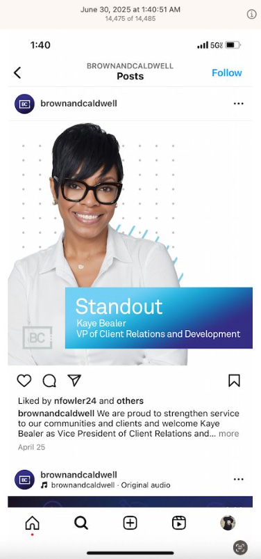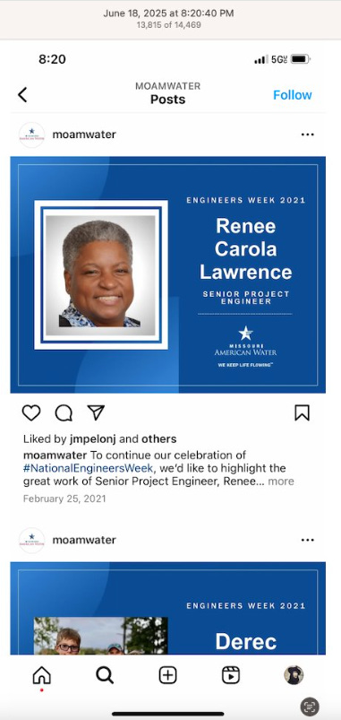 Screenshots above: Sr Marketing & Communications Manager, Brain Station. Program Manager, Brain Station. Engineer & Project Lead, AirQo. Sr Project Engineer, Missouri American Water. "First female" Fire Chief, City of Tampa. "New Fire Chief", Roseville CA. VP, Brown and Caldwell. Principal Information Specialist, Riverside County District Attorney's Office CA. Commissioner, Assn of Women in Water, Energy & Environment.