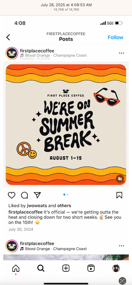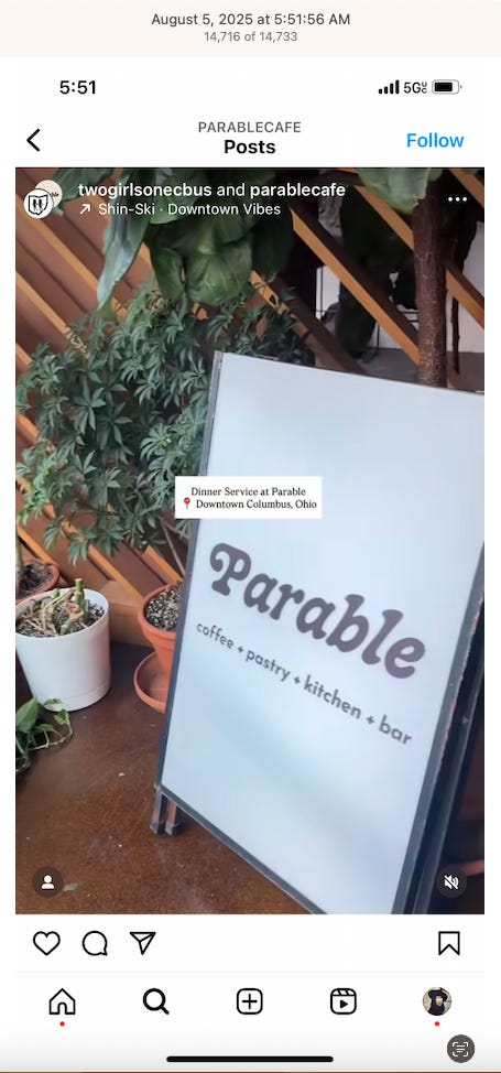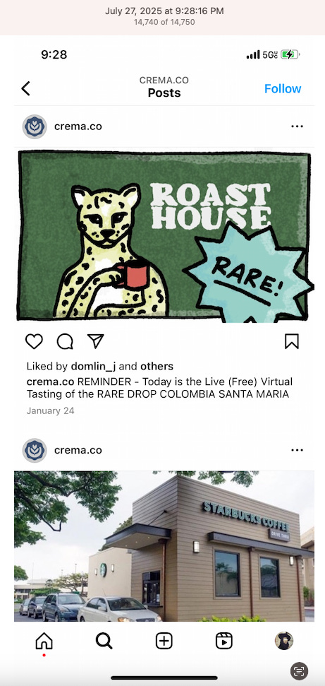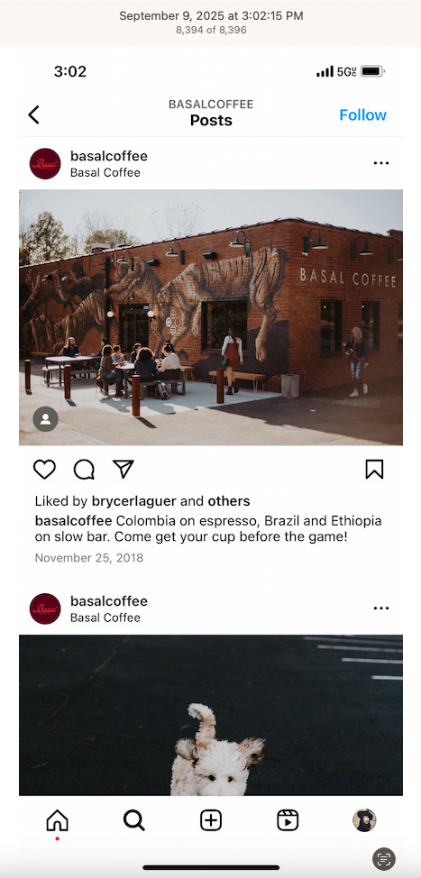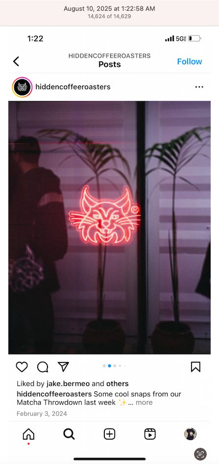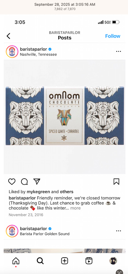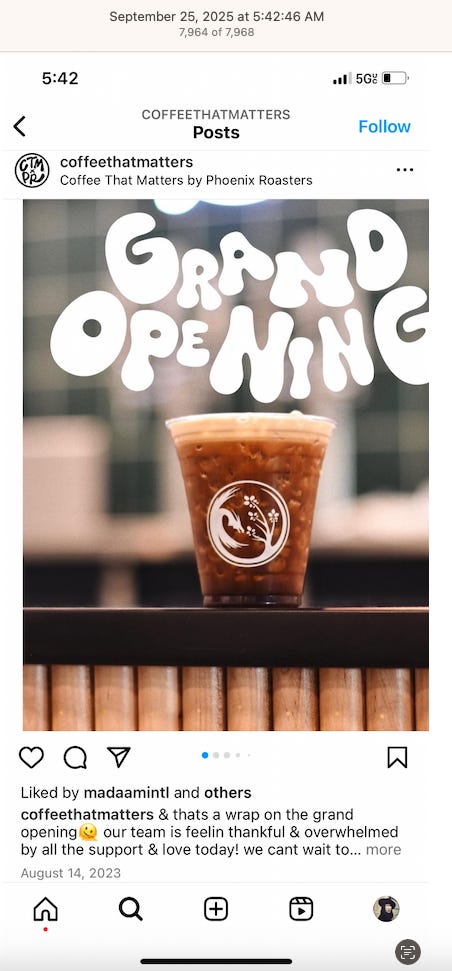 Screenshots above: Parable Cafe. Coava Coffee. Drama Roastery. The Answer. Official Georgetown DC. Club Foamo. Traze Pizza, LIC NY. Inside a building in LIC, NY. Cafe Nunez. *Bold means I took the photos.