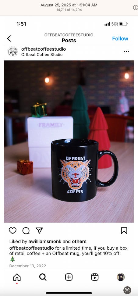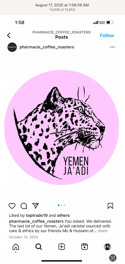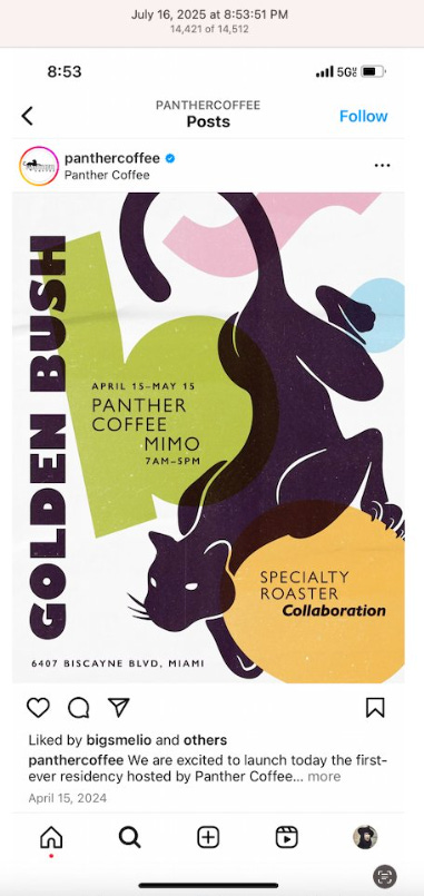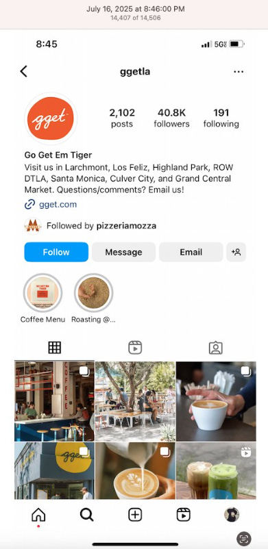 Screenshots above: Panther Coffee. Go Get Em Tiger’s Instagram. DiDi. Hip Hop In Chinatown. Gesha Village. Il Gatto Pardo. Ferris Coffee. High Roller Lobster Co. Mighty Peace Coffee.