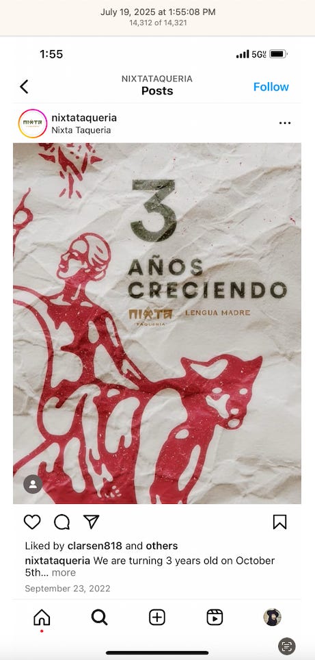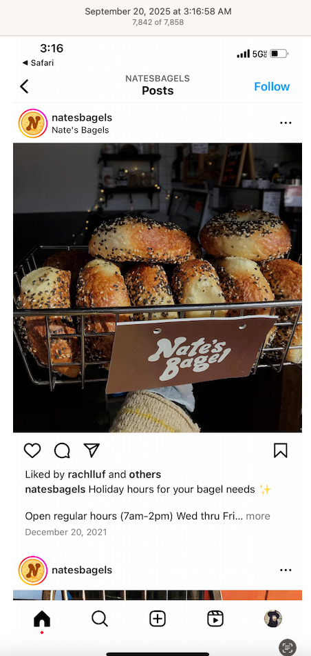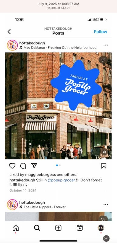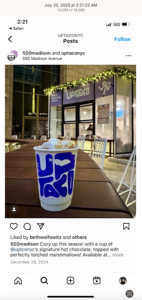Screenshots above: Masienda. L’Angelou. Feel Sips. Werkshop (top of image). Up Taco. Pollen Coffee & Flowers. Five Hitter. Twaydabae. Wholefoods at Bryant Park.