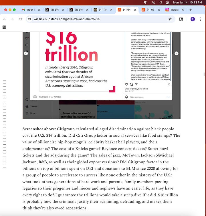 When there's exclusive black news like Afronews, Huffington Post’s Black Voices, Black Twitter/X, NYT & Race, and other such publications that keep focusing on reparations and what's allegedly owed to black people (despite taxes that pay for social services/DEI) that builds up tension and resentment from the black population thinking they're owed something that they're not getting, what seems to be intentional influence for just that kind of reaction.