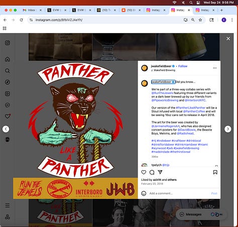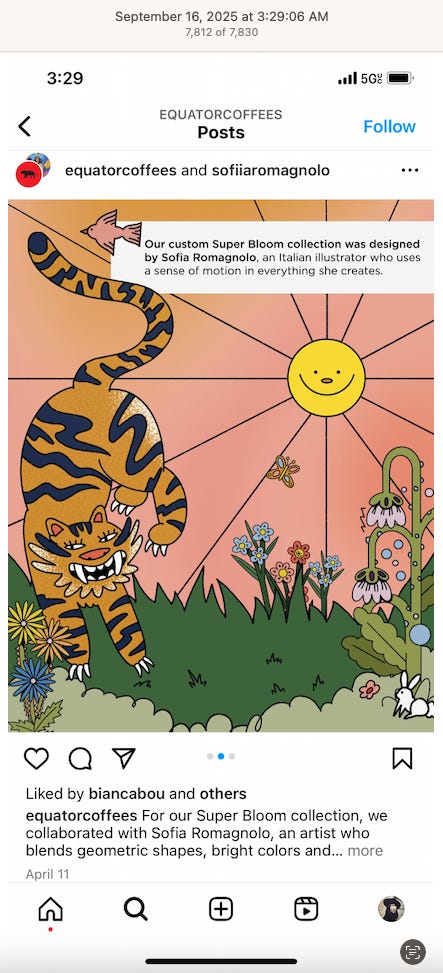 Screenshots above: Same illustrator (POC) for Culture Pop, Google, La Colombe. Sand City Brewing Co. Libertario Coffee (political connotation). Cultural Alliance Fairfield County.