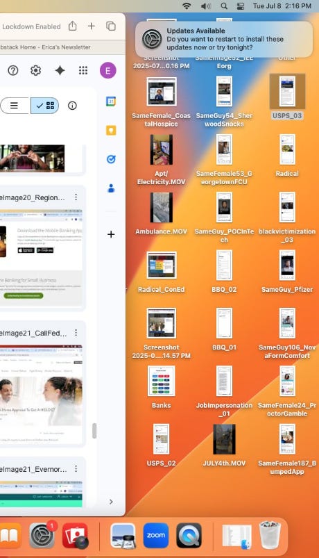 Screenshots above: Any crisis, they're "hustling." These are the same criminals who I've been fighting since 2022, though they've been in my life longer, scamming, defrauding, violating my rights. They also profited from Pasadena fires in CA. Probably anytime anyone makes a donation via social media, it goes to the criminals.