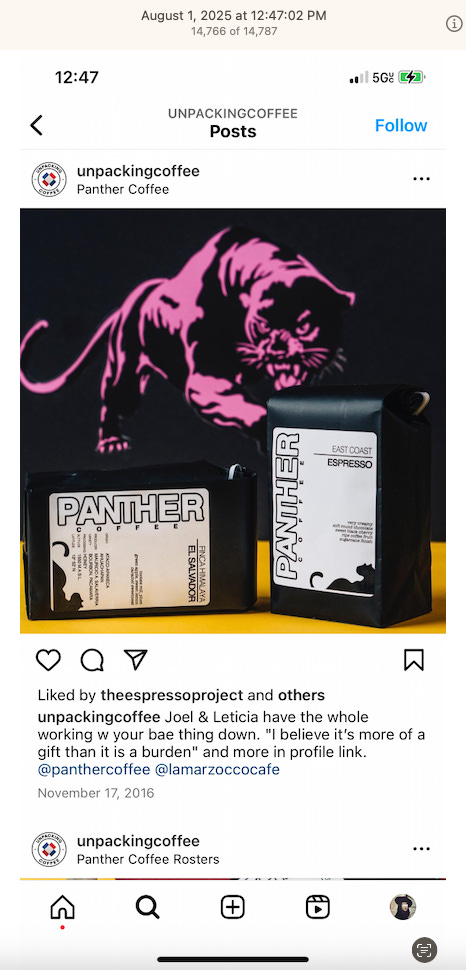 Screenshots above: Nice Coffee. Unpacking Coffee’s “Panther Coffee”. Oslop Studio & Hammel & Hochreiter. VJ Type, & The Lemonade Home. Vailio & El Espiritu. Onca chocolate. Nomad Coffee. Legacy Coffee Roasters.