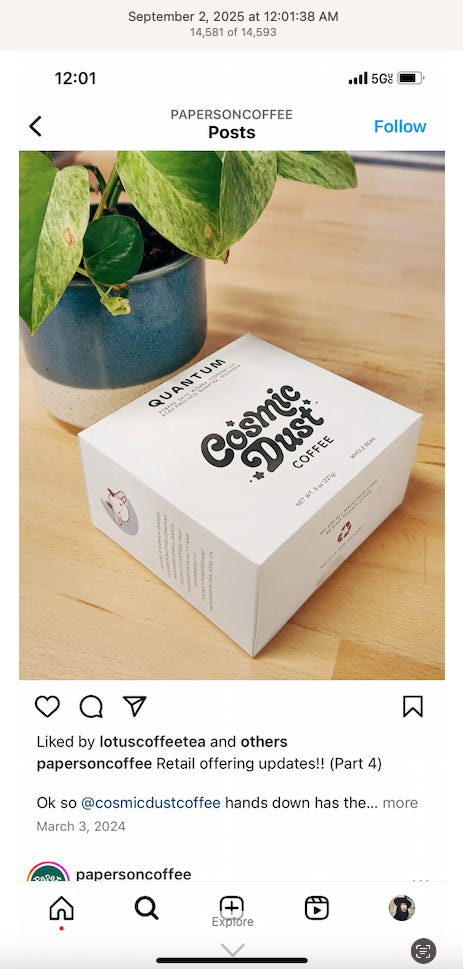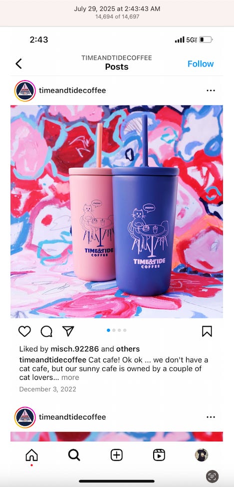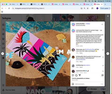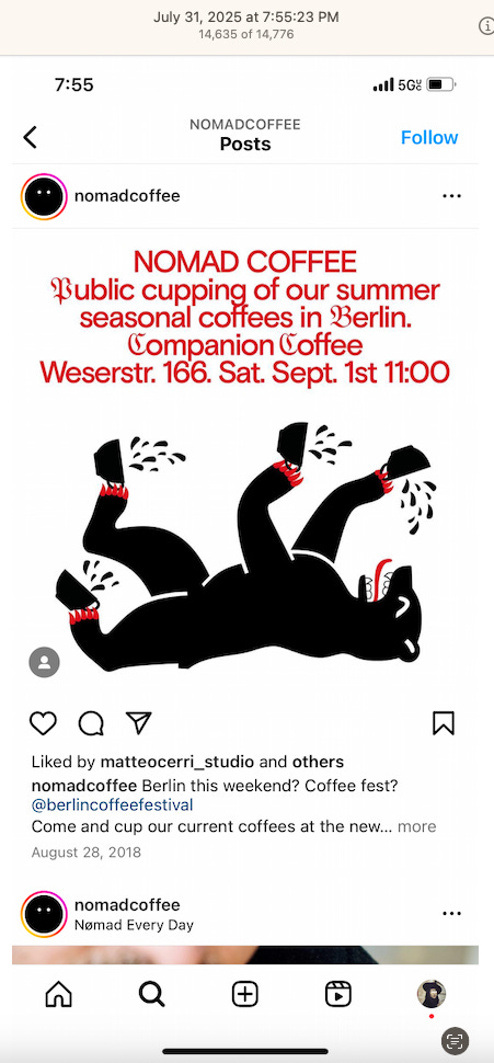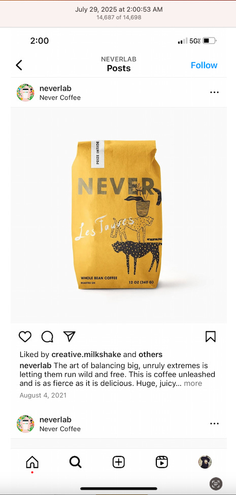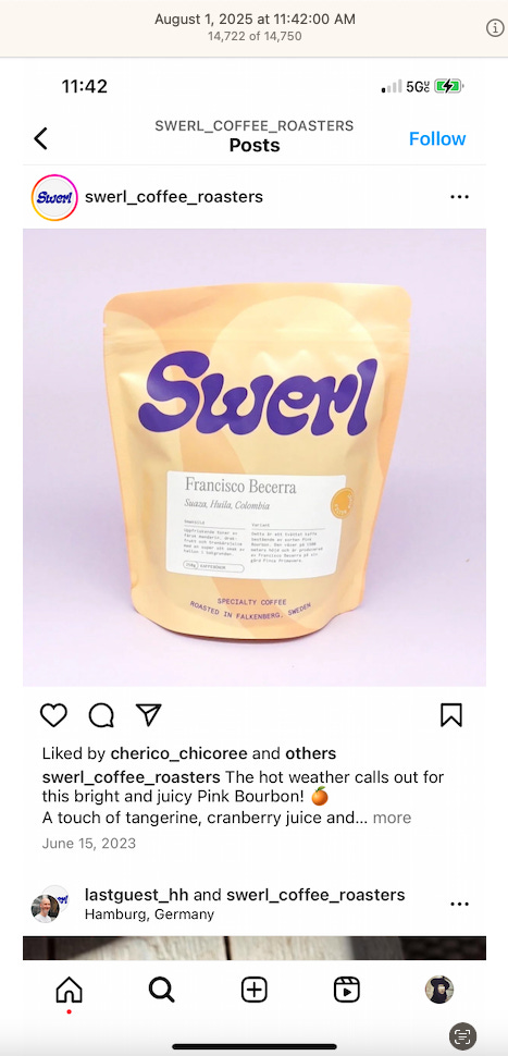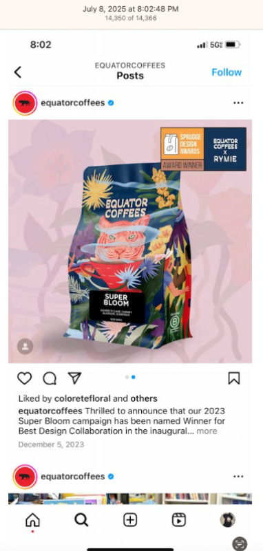 Screenshots above: Mike Cherman. Meanwhile Beer. Time & Tide Coffee. Onyx Coffee Lab. Sweet Chick. Wake Water. Bacardi. Paper Boy Paris. Boon Boon Coffee.