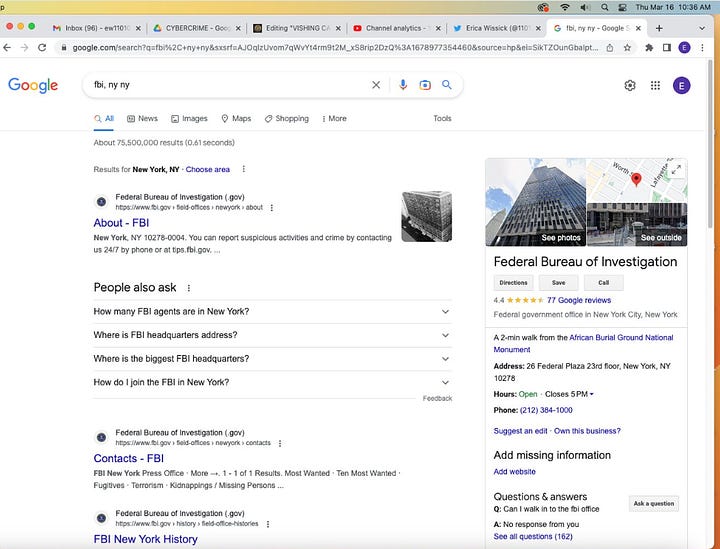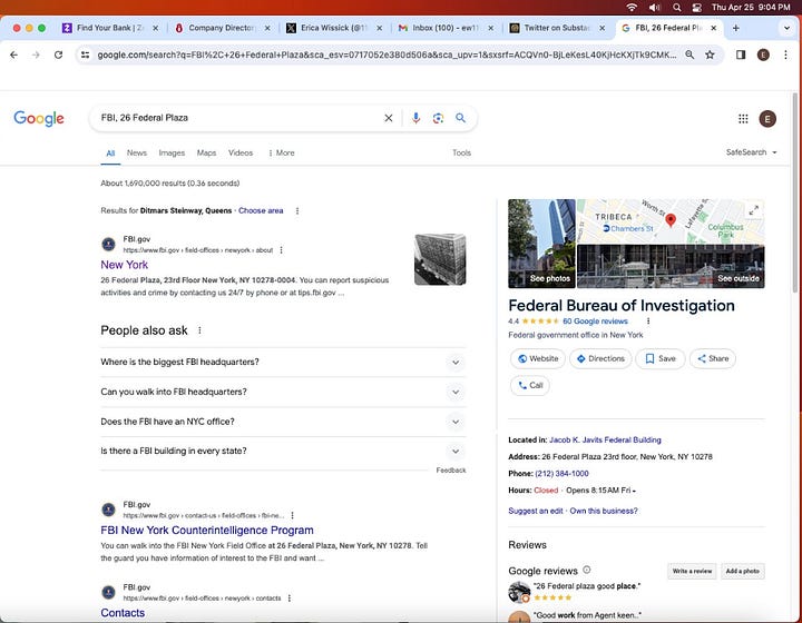 Screenshots above: In 2023 when I googled FBI's office, African Burial Ground National Monument showed as 2-min walk. When I googled again one year later, it didn't show. Based on social media, many African Museums, including one for Black Panthers, and monuments have been erected since BLM.