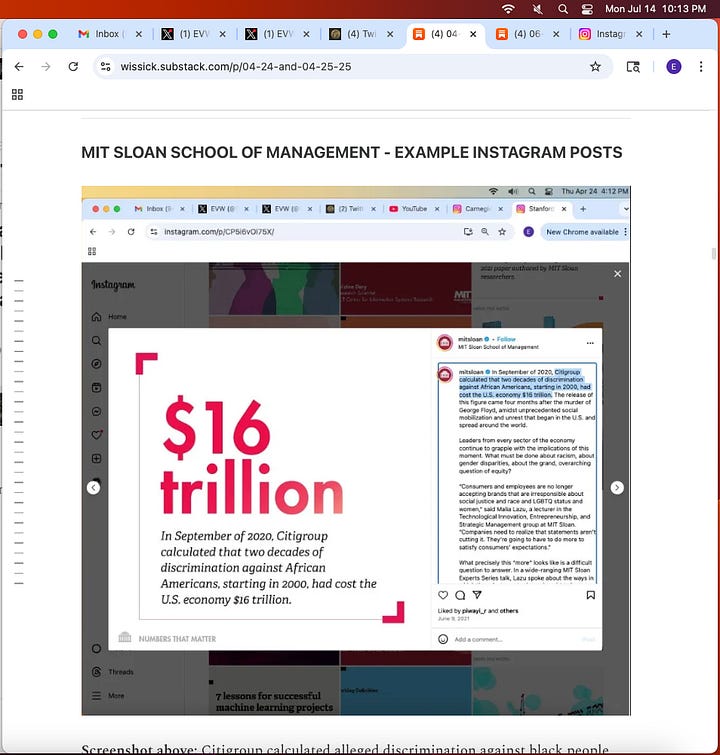 Screenshots above: MIT Sloan School of Management’s Instagram post on the same Citigroup report of a $16 trillion loss to the economy due to racism to black people in the U.S.