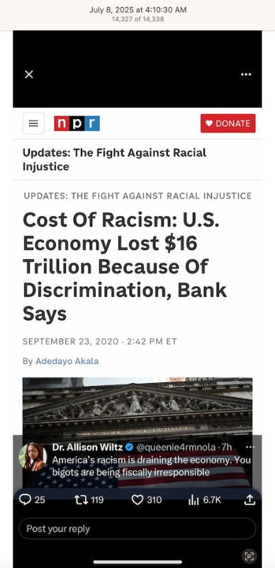 Reminder of the “systemic racism” problem in the U.S. - Link to post.