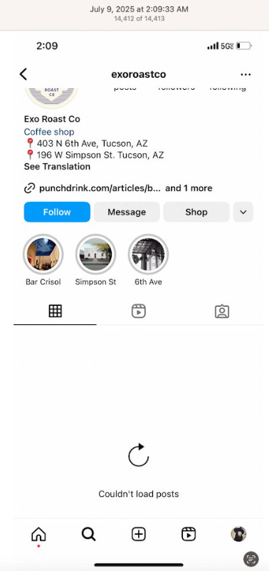 Screenshots above: Obstructed on Instagram app. Nothing stops me from getting on my iMac where they can’t obstruct me from there.