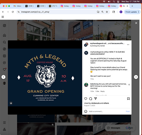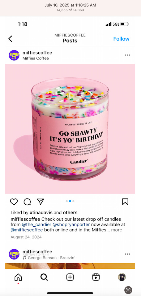 Screenshots above: Stray Coffee. Mod Cup Coffee. Nerf. Young Miko. Vault City Brewing (with “drip”). Softies Burger & Canyon Coffee. HITC Festival. Disconap Comedy. Cowdog Coffee.