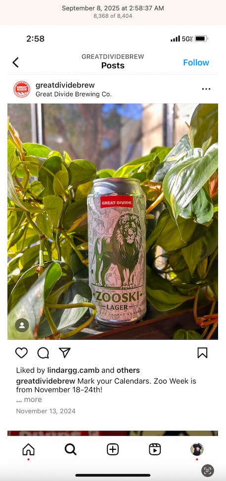 Screenshots above: NoDa Brewing. Develop Coffee Roasters. Basal Coffee. Great Divide Brew (political connotation). Pure (with crown). Lioness Vibrators. Stitch Coffee.