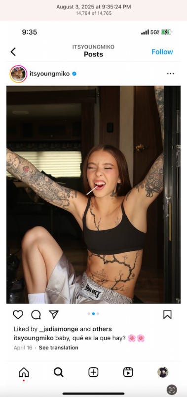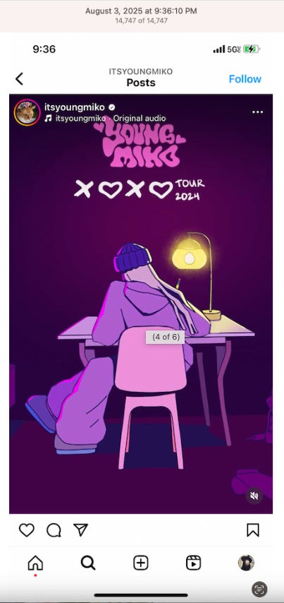 Screenshots above: Other examples of similar font as the on Young Miko’s Instagram post.